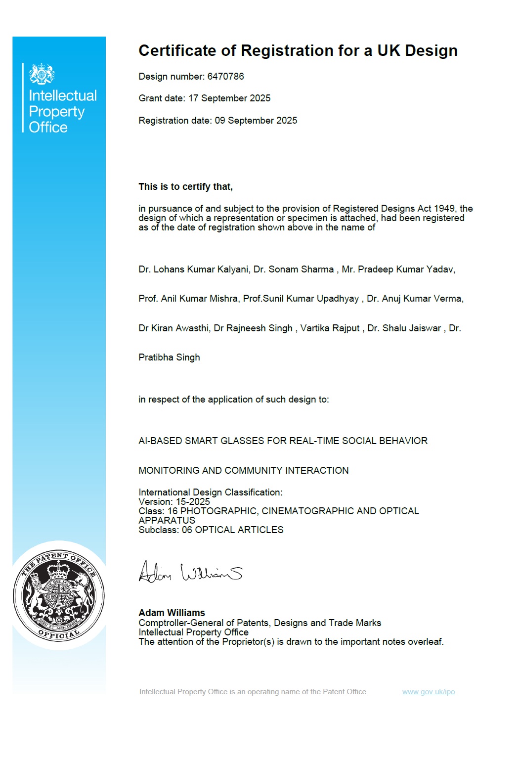 डी. बी. एस. कॉलेज के प्राचार्य प्रो0 अनिल कुमार मिश्र, शिक्षक- शिक्षा (बीएड) विभाग के विभागाध्यक्ष प्रोo सुनील कुमार उपाध्याय, सहायक आचार्य श्री अनुज कुमार वर्मा (असिस्टेंट प्रोफेसर) एवं डॉ0 किरण(असिस्टेंट प्रोफेसर) को एक महत्वपूर्ण पेटेंट रजिस्ट्रेशन 2025 में प्राप्त हुआ I यह उपलब्धि सामाजिक व्यव्हार एवं सामुदायिक अंत:क्रिया के अध्ययन एवं विकास में एक महत्वपूर्ण कदम है और हमारे महाविद्यालय के लिये गर्व एवं सम्मान की बात है I
