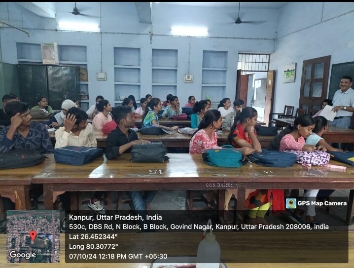 दिनाँक 07 अक्टूबर 2024 को  डी. बी.एस. कालेज कानपुर में वनस्पति विज्ञान विभाग की बी.एस-सी. – प्रयोगशाला में “स्वच्छता विषय” पर प्रश्नोत्तरी कार्यक्रम का आयोजन किया गया। जिसमें स्वच्छता से सम्बंधित राष्ट्रीय एवं राज्य/निकाय स्तरीय विषयों पर, कार्यक्रम में उपस्थित स्नातक/परास्नातक छात्र/छात्राओं से प्रश्नोत्तरी के माध्यम से उत्तर प्राप्त किये गये। कार्यक्रम की उपयोगिता पर सर्वप्रथम वनस्पति विज्ञान विभाग के विभागाध्यक्ष द्वारा संक्षिप्त उदबोधन के पश्चात स्वच्छता अनुरक्षण समिति के प्रभारी डॉ. अमित तिवारी द्वारा उक्त विषय की दैनिक जीवन में महत्वता एवं जागरूकता को समझाते हुये अनेक रोचक प्रश्न किये गये। कार्यक्रम में उपस्थित छात्र/छात्राओं ने अनेकों प्रश्नों के उत्साहपूर्वक त्वरित उत्तर दिये। इस अवसर पर समिति के सदस्य श्री महेश चंद्र एवं वनस्पति विज्ञान विभाग के समस्त शिक्षक/शिक्षिकायें उपस्थित रहे।