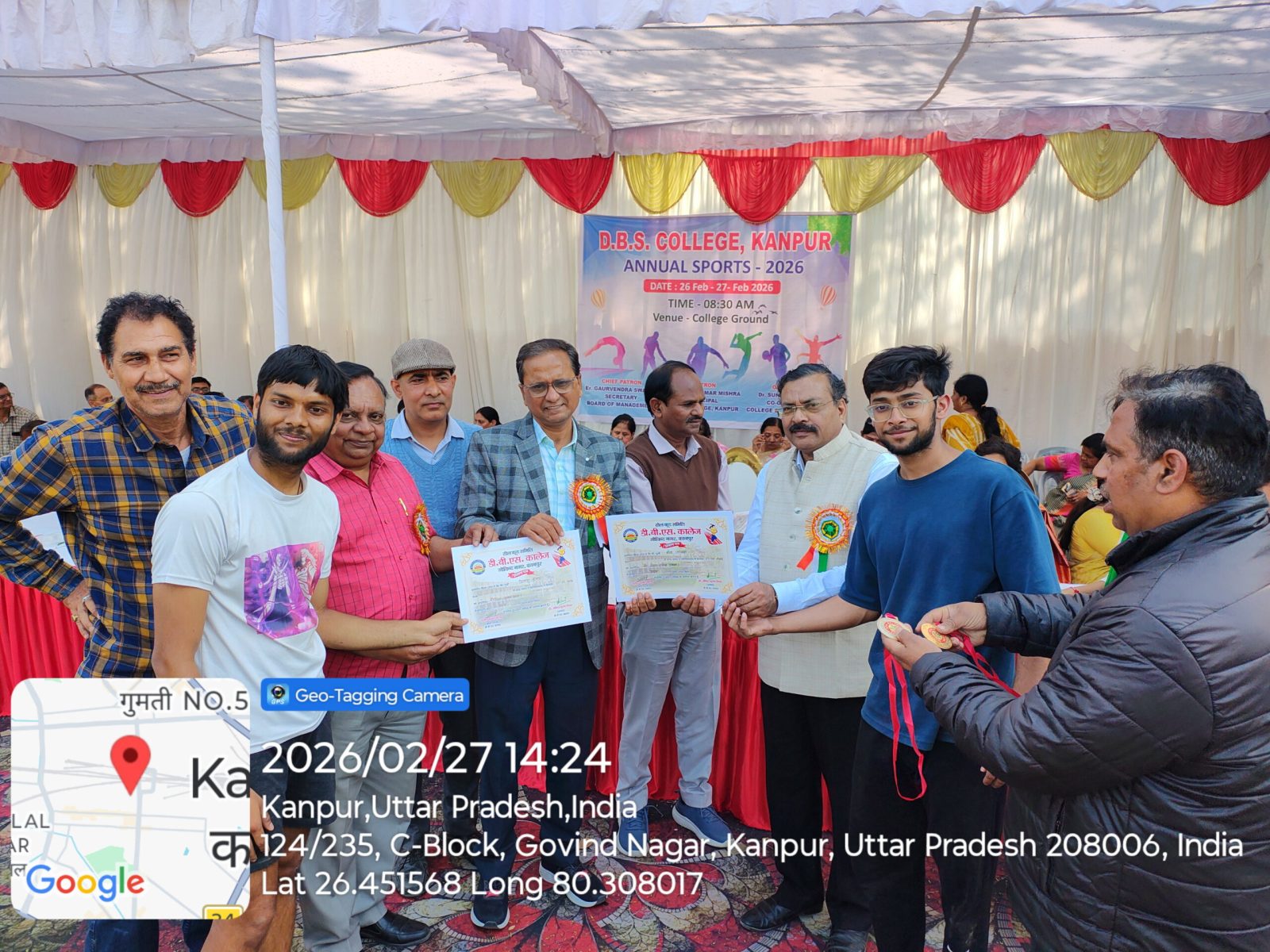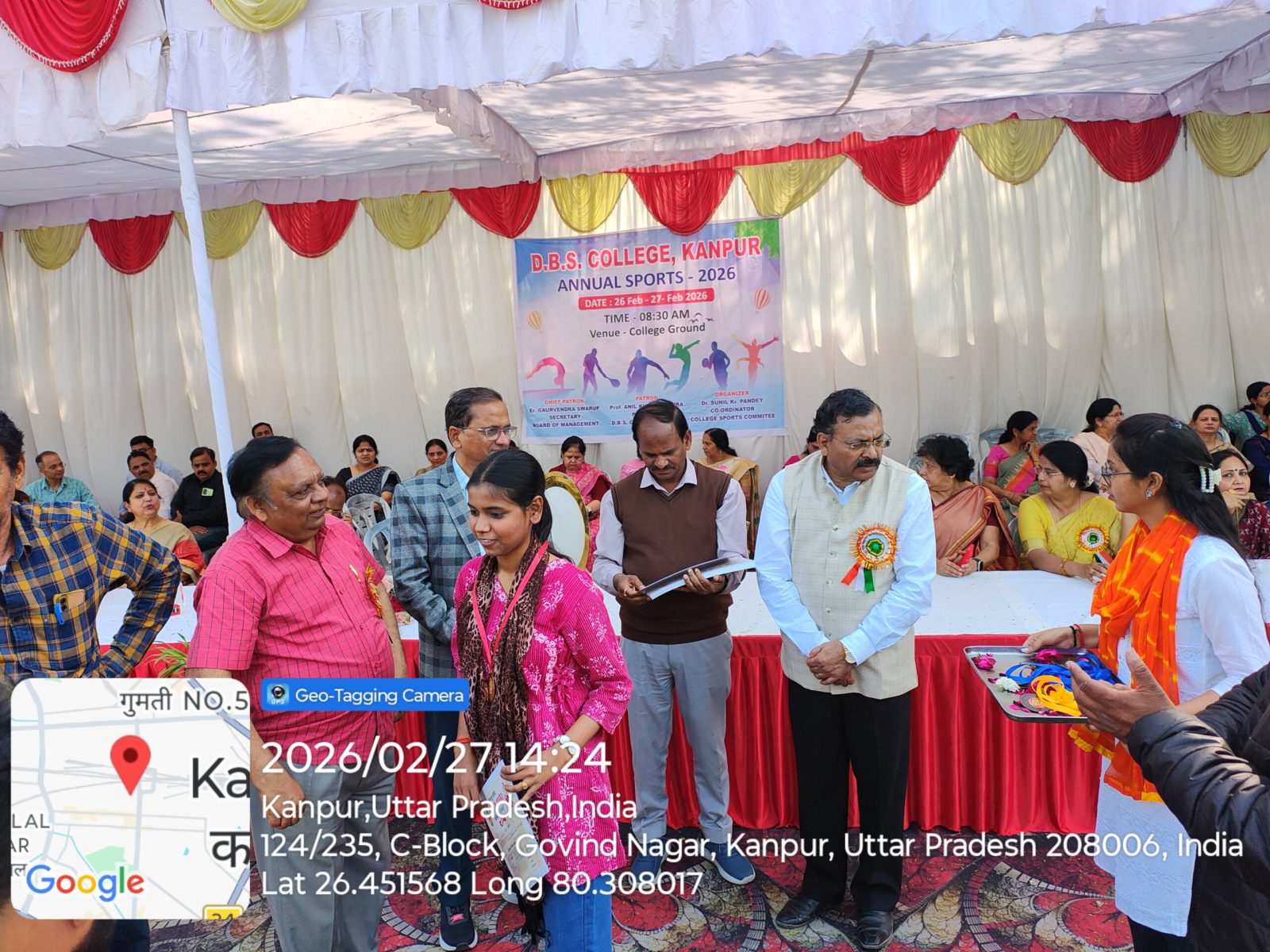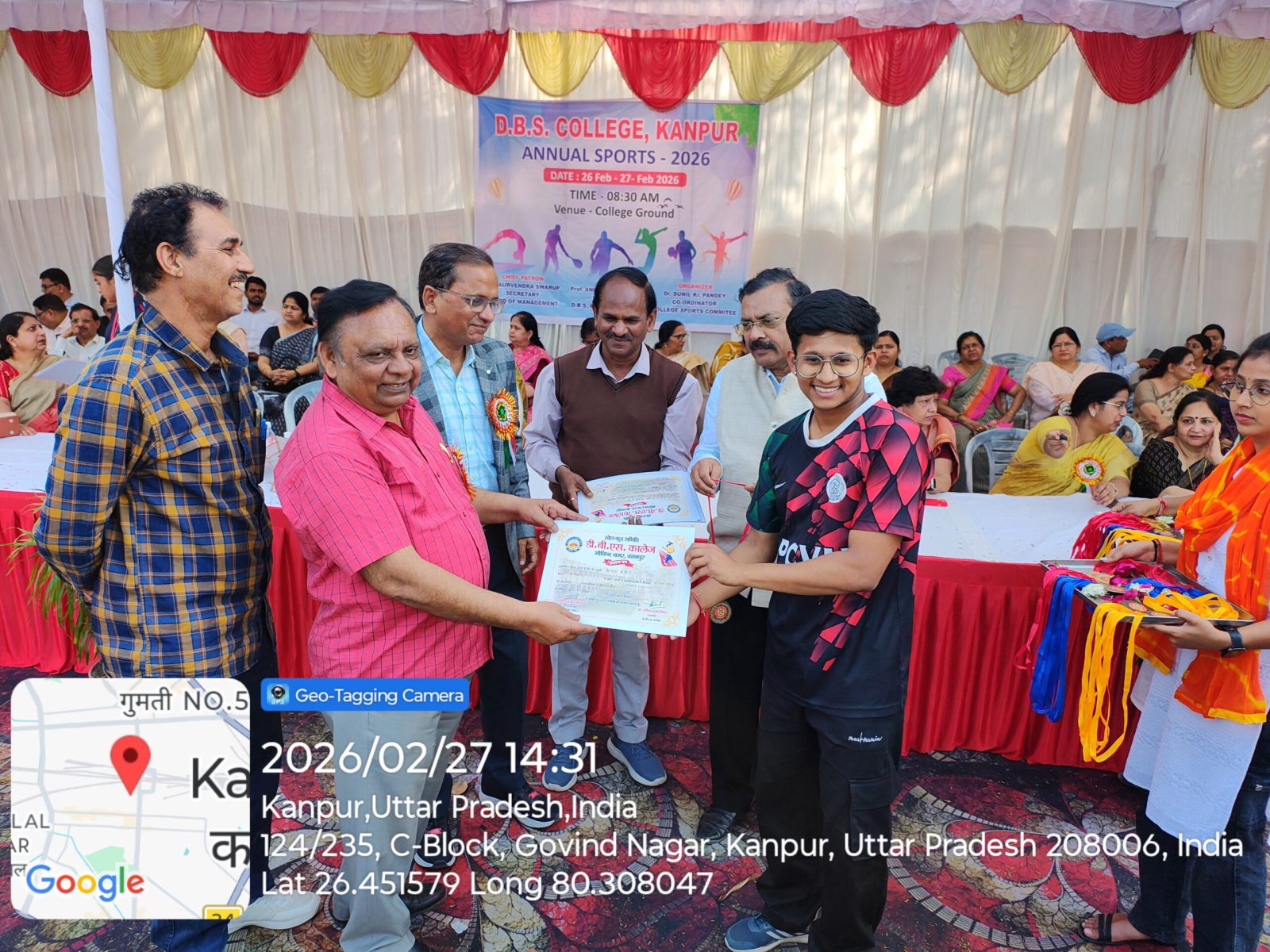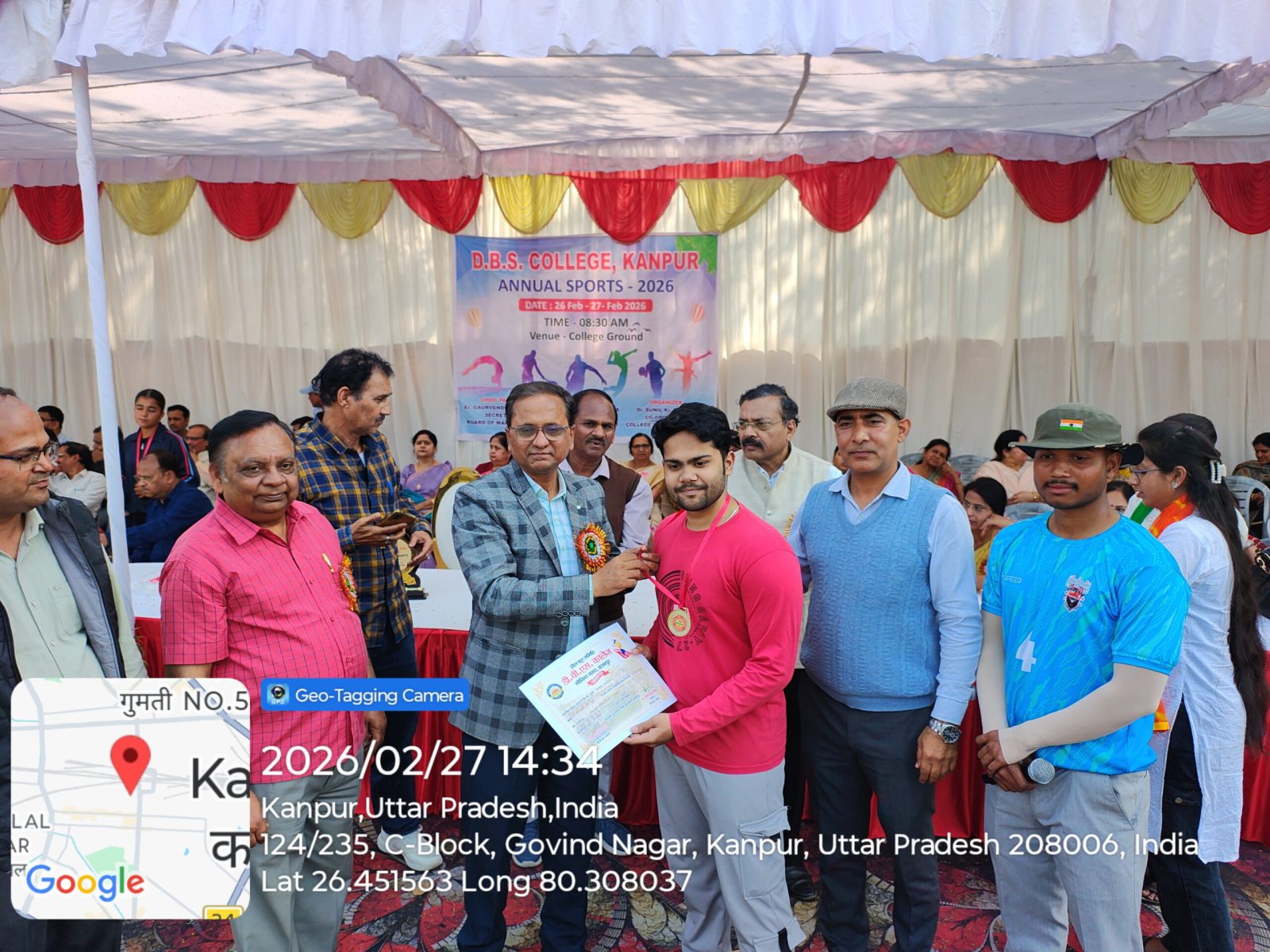 डी०बी०एस० कालेज, कानपुर में आज दिनांक 27.02.2026 को वार्षिक क्रीड़ा प्रतियेगिता आयोजित की गयी जिसमें दौड, लम्बी कूद, शॉटपुट, भाला फेंक, गोला फेंक, डिस्कस थ्रो, चेस्, कबड्डी, खो-खो, बैडमिंटन की प्रतियोगिताऐं आयोजित की गयी। महाविद्यालय के प्रबंध समिति सचिव इं0 गौरवेन्द्र स्वरूप जी ने अपने शुभकामना संदेश में सभी खिलाडियों को खेल भावना के साथ प्रतियोगिता में प्रतिभाग करने को कहा। कार्यक्रम में बोलते हुये प्राचार्य प्रो0 अनिल कुमार मिश्र ने कहा कि खेल हमारे जीवन का महत्वपूर्ण अंग है। खेल न केवल हमारे शरीर को स्वस्थ्य और सशक्त बनाते हैं, बल्कि हमारे मन को भी प्रसन्न एवं संतुलित रखते हैं। खेल हमें हार-जीत को समान भाव से स्वीकार करना सिखाते है।