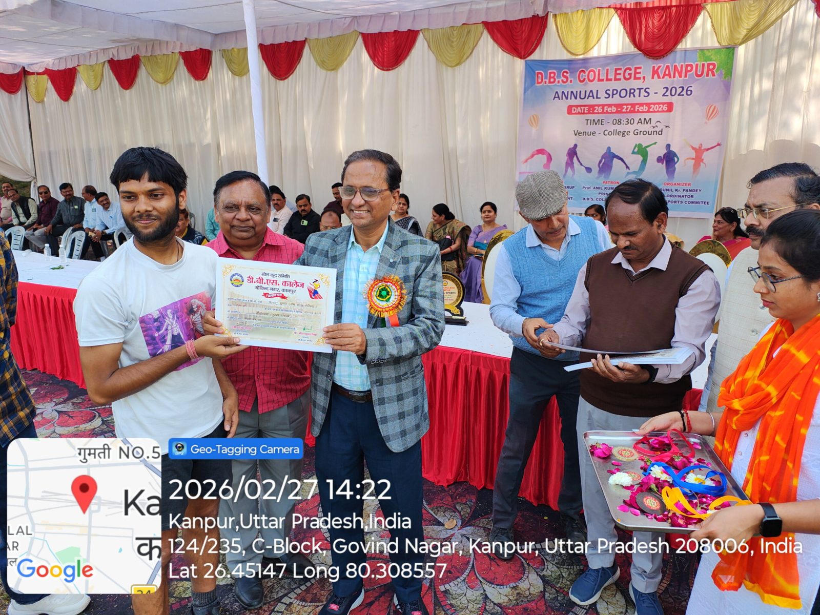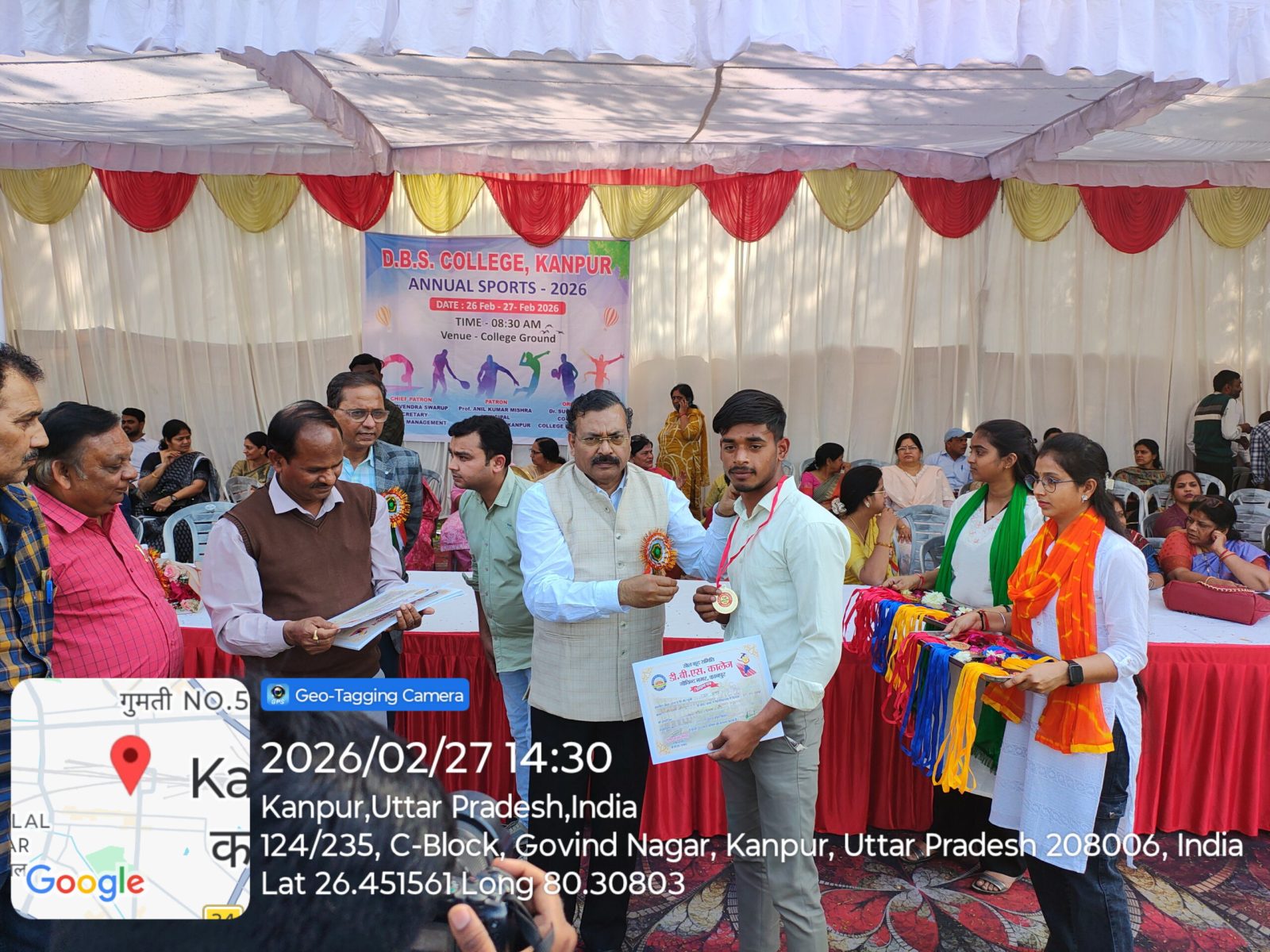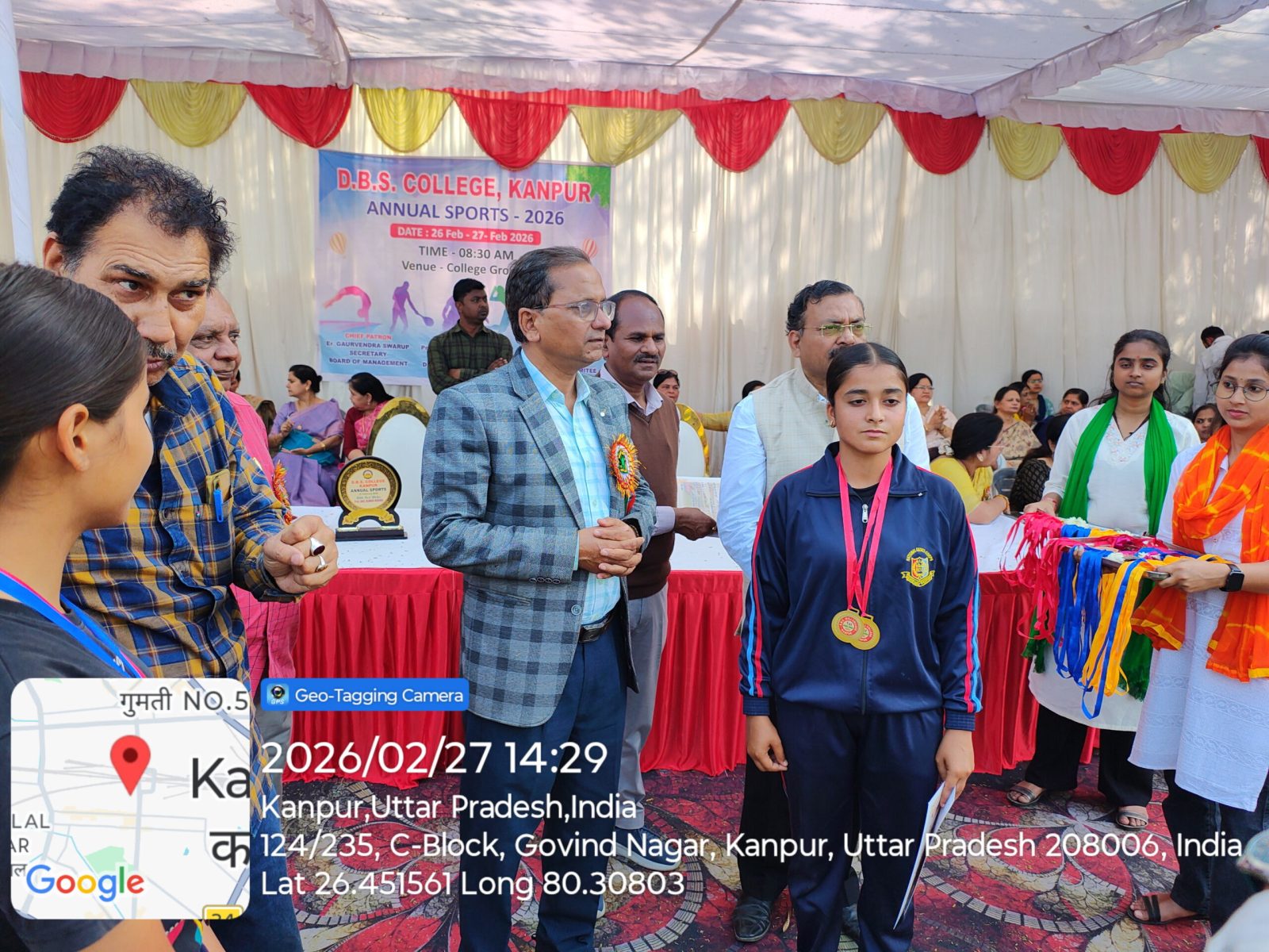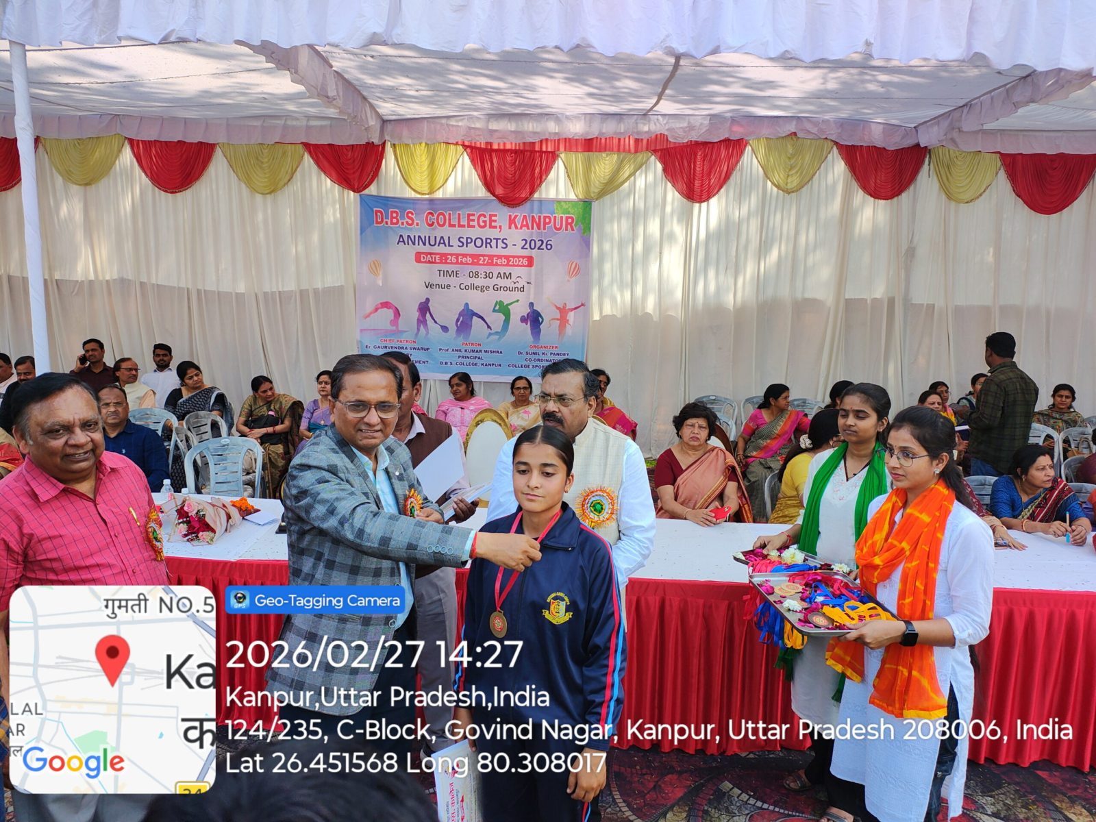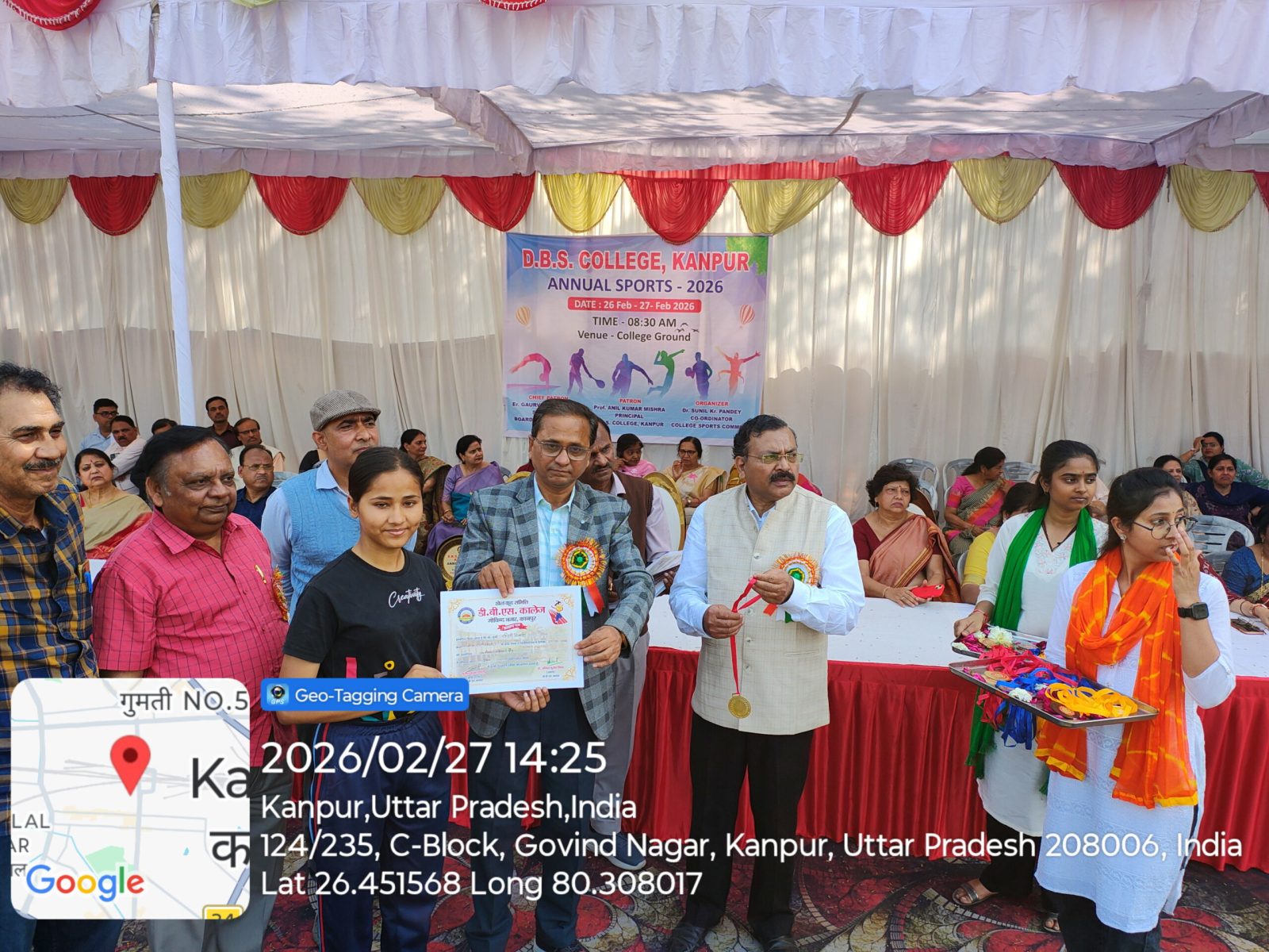 डी०बी०एस० कालेज, कानपुर में आज दिनांक 27.02.2026 को वार्षिक क्रीड़ा प्रतियेगिता आयोजित की गयी जिसमें दौड, लम्बी कूद, शॉटपुट, भाला फेंक, गोला फेंक, डिस्कस थ्रो, चेस्, कबड्डी, खो-खो, बैडमिंटन की प्रतियोगिताऐं आयोजित की गयी। महाविद्यालय के प्रबंध समिति सचिव इं0 गौरवेन्द्र स्वरूप जी ने अपने शुभकामना संदेश में सभी खिलाडियों को खेल भावना के साथ प्रतियोगिता में प्रतिभाग करने को कहा। कार्यक्रम में बोलते हुये प्राचार्य प्रो0 अनिल कुमार मिश्र ने कहा कि खेल हमारे जीवन का महत्वपूर्ण अंग है। खेल न केवल हमारे शरीर को स्वस्थ्य और सशक्त बनाते हैं, बल्कि हमारे मन को भी प्रसन्न एवं संतुलित रखते हैं। खेल हमें हार-जीत को समान भाव से स्वीकार करना सिखाते है।