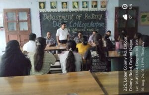 दिनांक 01अगस्त 2024को डी.बी.एस.कालेज कानपुर के वनस्पति विज्ञान विभाग में प्राचार्य प्रोफेसर अनिल कुमार मिश्रा के निर्देशानुसार नव प्रवेशित स्नातक एवं परास्नातक छात्र एवं छात्रांओ के लिए ओरिएंटेशन कार्यक्रम काआयोजन किया गया । विभागाध्यक्ष प्रोफेसर एस.पी.सिंह ने कार्यक्रम का शुभारंभ करते हुए नव प्रवेशित छात्र एवं छात्रांओ का स्वागत करते हुए महाविद्यालय मे छात्र हित के लिए दी जाने वाली विभिन्न सुविधाओं एवं अध्ययन की वारीकियों को समझाया।कार्यक्रम मे प्रमुख रूप से डॉ.अतुल सिंह, डॉ.रेखा रानी ,डॉ.सत्येंद्र कुमार श्रीवास्तव, डॉ.प्रदीप सिंह, डॉ. ज्ञान प्रकाश एवं सन्दीप कुमार पाल उपस्थित रहें।कार्यक्रम का संचालन डॉ.अमित तिवारी ने किया।