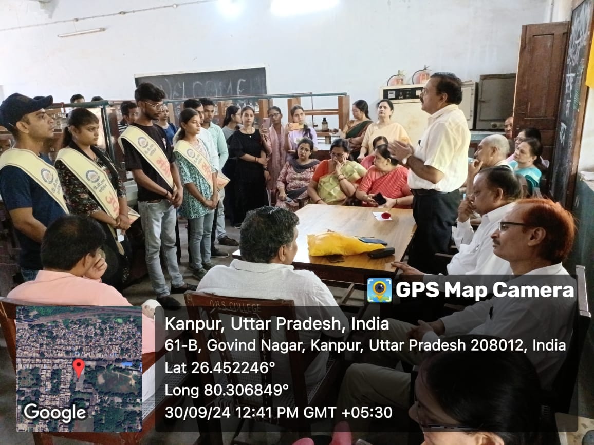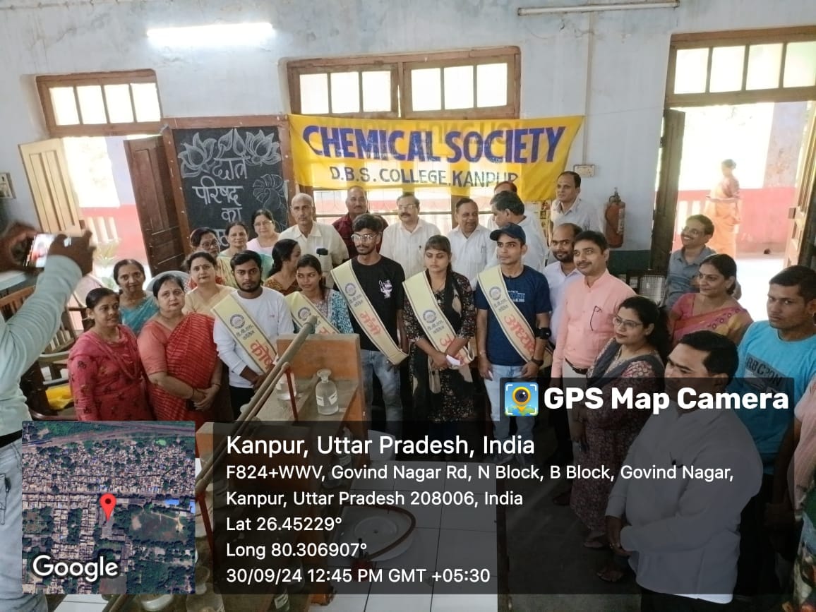 डी.बी.एस. (पी.जी.) कालेज, कानपुर में रसायन विज्ञान विभाग के तत्वाधान में दिनांक 30/09/2024 को केमिकल सोसाइटी के अंतर्गत छात्र परिषद् का वार्षिक चुनाव हुआ, इस अवसर पर महाविद्यालय के प्राचार्य प्रोफेसर अनिल कुमार मिश्रा जी ने नवनिर्वाचित सभी सदस्यों को शपथ ग्रहण कराया तथा छात्र परिषद के विषय में भी छात्रों को बताया एवं प्रो. के.के. श्रीवास्तव (IQAC- Coordinator) ने भी महाविद्यालय की प्रगति के विषय में छात्र-छात्राओं को जानकारी दी। इस कार्यक्रम में प्रो. सी.एम. सक्सेना (विभागाध्यक्ष), ने छात्र-छात्राओं को छात्र परिषद गठन के विषय में जानकारी दी तथा उन्होंने बताया कि यह एक जिम्मेदार पद है जिसके तहत सभी छात्र एवं छात्राओं की समस्याओं का हल निकालना है एवं रसायन विज्ञान विभाग/महाविद्यालय के विकास के लिये कार्य करना होता है इस कार्यक्रम में केमिकल सोसाइटी इंचार्ज प्रो. सपना शुक्ला, डा. अतुल तिवारी, डा. राजेश शुक्ला, डा. पंकज शुक्ला, डा. अर्चना सक्सेना, डा. अलका दीक्षित, डा. सुमन कटियार, डा. शैलेन्द्र शुक्ला, डा. विवेक पाण्डेय एवं गणमान्य प्राध्यापको की गरिमामयी उपस्थिति में हर्षोल्लास के साथ सम्पन्न हुआ। कार्यक्रम का संचालन डा. तमन्ना बेगम ने किया। कैमिकल सोसाइटी (छात्र परिषद) के नवनिर्वाचित सदस्यों के नाम निम्नलिखित है