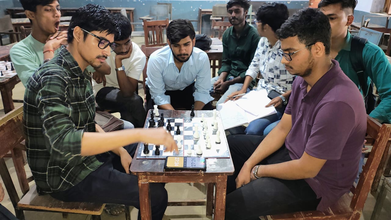 आज दिनांक 28 सितंबर 2024 को डीबीएस कॉलेज खेलकूद समिति द्वारा महाविद्यालय में शतरंज प्रतियोगिता का आयोजन किया गया। प्रतियोगिता में छात्रों ने बढ़ चढ़कर हिस्सा लिया। यह प्रतियोगिता छह चरणों में संपन्न हुई। इस प्रतियोगिता का फाइनल मैच विवेक तिवारी एवं अनंत दीक्षित के मध्य हुआ अंततः इस रोमांचकारी मुकाबले में विवेक तिवारी विजेता एवं अनन्य दीक्षित उपविजेता बने💐💐