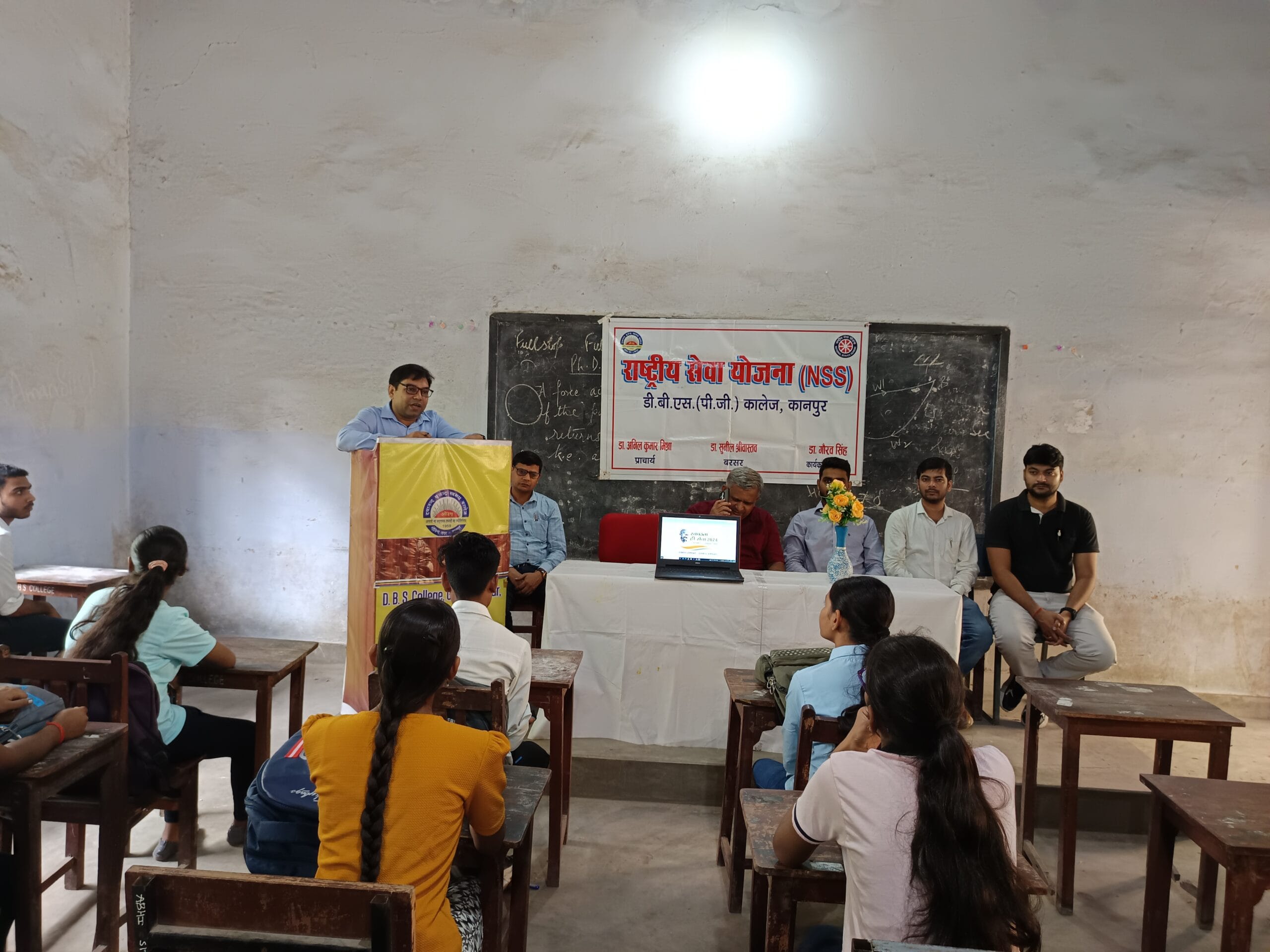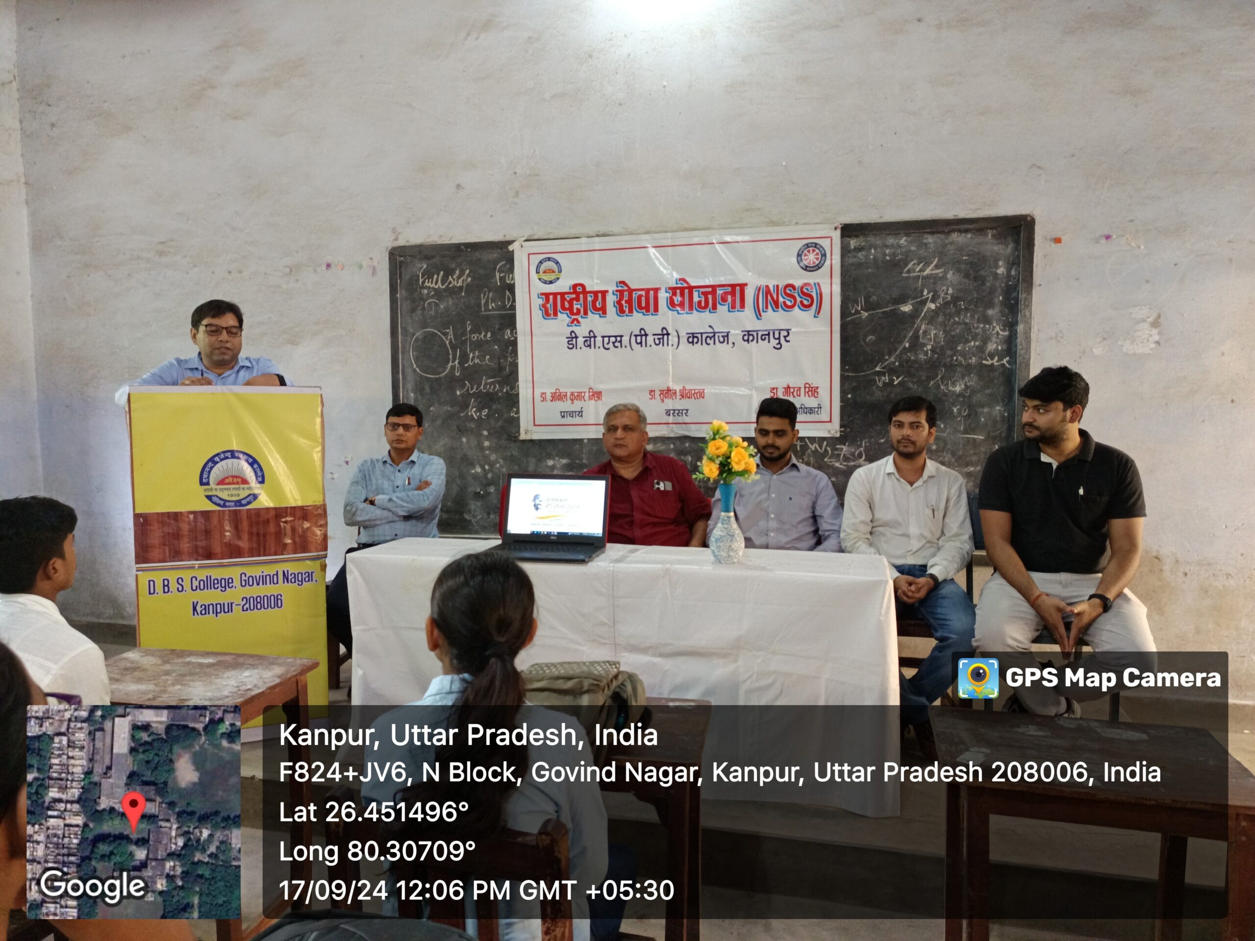 आज दिनांक 17.9.2024 को राष्ट्रीय सेवा योजना इकाई, डीबीएस कॉलेज कानपुर द्वारा शासन द्वारा जारी दिशा निर्देशों के क्रम में स्वच्छता ही सेवा पखवाड़ा ( 17.09.2024 – 02.10.2024 ) का शुभारंभ किया गया | कार्यक्रम का शुभारंभ महाविद्यालय के प्राचार्य डॉ. अनिल कुमार मिश्रा जी के द्वारा तथा कार्यक्रम का संचालन कार्यक्रम अधिकारी डॉ. गौरव सिंह द्वारा किया गया | डॉ. गौरव सिंह ने कार्यक्रम में पधारे सभी अतिथियों , एनएसएस समिति के सदस्यों, स्वयंसेवकों तथा छात्र-छात्राओं का स्वागत किया | इसके पश्चात उन्होंने स्वच्छता ही सेवा पखवाड़ा के अंतर्गत संपन्न किए जाने वाले विभिन्न कार्यक्रमों की तिथिवार रूपरेखा उपस्थित स्वयंसेवकों के समक्ष प्रस्तुत की | उन्होंने बताया कि स्वच्छता ही सेवा पगवाड़ा के अंतर्गत शासन स्वयंसेवकों से अपेक्षा करता है कि वह पब्लिक प्लेसेस जैसे – रेलवे स्टेशन ,बस स्टेशन, तालाब ,नदी, पोखर, स्कूल , कॉलेजों के मैदान, स्पोर्ट ग्राउंड्स,सब्जी मंडी आदि स्थानों पर जाकर साफ – सफाई के कार्यक्रम संचालित करें जिससे आम जन मानस में स्वच्छता के प्रति जागरुकता बढ़ सके | सभी स्वयंसेवकों को निर्देशित किया गया कि वह एनएसएस इकाई द्वारा संचालित होने वाले सभी कार्यक्रमों में बढ़- चढ़ कर हिस्सा लें | कार्यक्रम में मुख्य अतिथि के रूप में पधारे शिक्षाशास्त्र विभाग के पर्यावरण विशेषज्ञ प्रोफेसर डॉ. कौशलेंद्र तिवारी द्वारा उपस्थित सभी स्वयंसेवकों तथा छात्र-छात्राओं को बताया गया कि मानवीय हस्तक्षेप के कारण पर्यावरण में प्रदूषण एक गंभीर समस्या बन गया है जिससे मानव ही नहीं बल्कि अन्य पशु पक्षियों का भी जीवन बुरी तरह प्रभावित हुआ है | यदि हम समय रहते नहीं चेते तो स्थितियां अत्यंत गंभीर हो जाएगी तब चाह कर भी हम उन पर नियंत्रण नहीं कर पाएंगे | कार्यक्रम में एन एस एस समिति के डॉ. जगदीप दिवाकर, डॉ. श्याम नारायण मिश्रा, शिव नारायण सिंह, डॉ. रंजीत यादव व स्वयंसेवकों में अभिषेक, वंश, सूरज सुजीत, शिखर प्रताप व शुभ यादव आदि उपस्थित रहे|