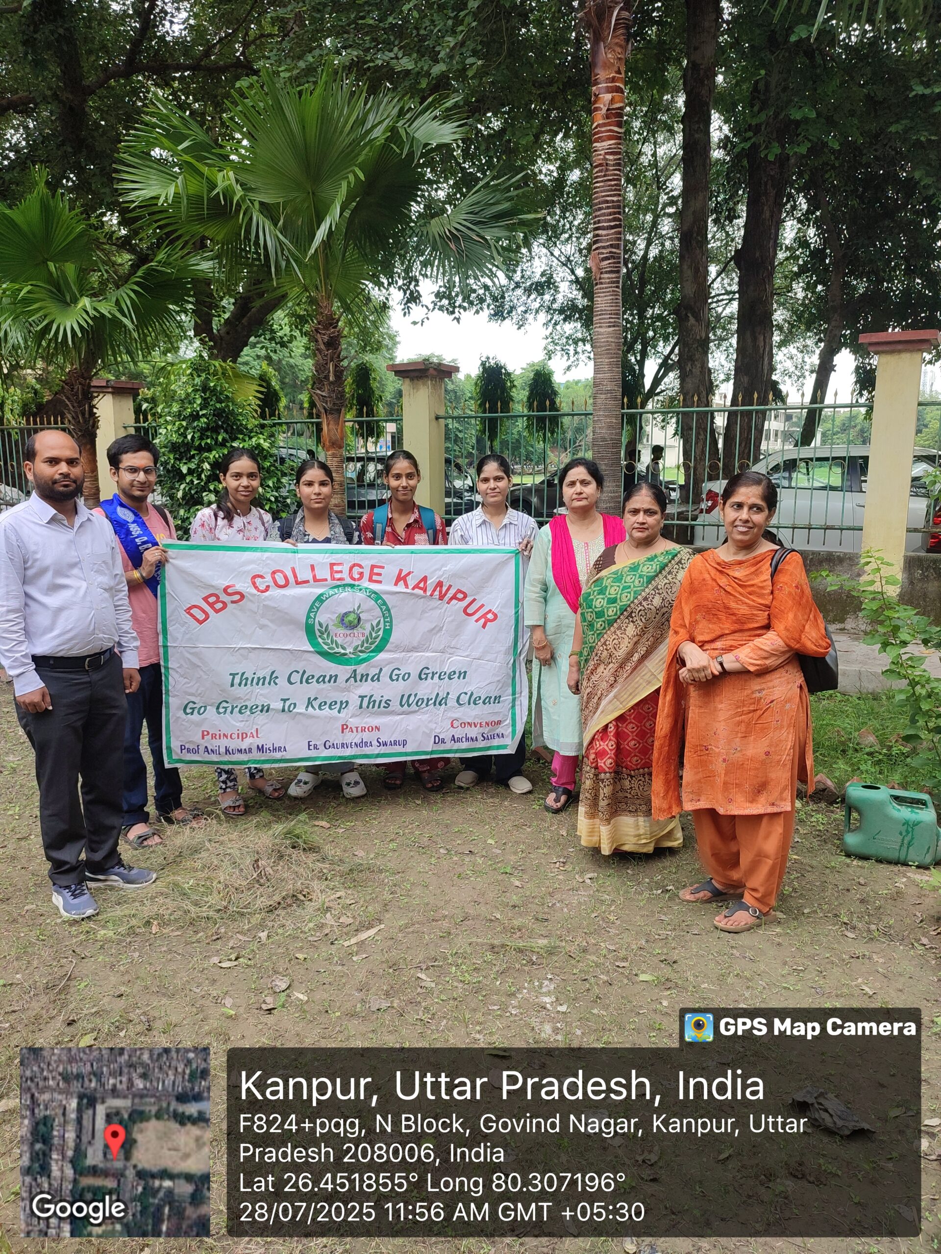 On 28th July 2025, a *Vraksharopan* (Tree Plantation) programme was successfully organized in the campus of DBS College under the supervision of Dr. Archana Saxena, Convenor of the Eco Club. The objective of the programme was to promote environmental awareness and sustainability through active participation in tree plantation. The event was graced by the Principal, Prof. Anil Kumar Mishra, who addressed the gathering and highlighted the importance of planting trees in combating climate change and preserving ecological balance. Prof. C. M. Saxena, Prof. Shailendra Shukla, Dr. Gaurav Singh, Dr. Deepak Kumar, Dr. Jyoti Mishra, Dr. Seema Tripathi, and Dr. Upendra Kumar were also present and actively participated in the plantation drive. Faculty members, students, and staff took part enthusiastically, making the programme a meaningful step towards a greener future.