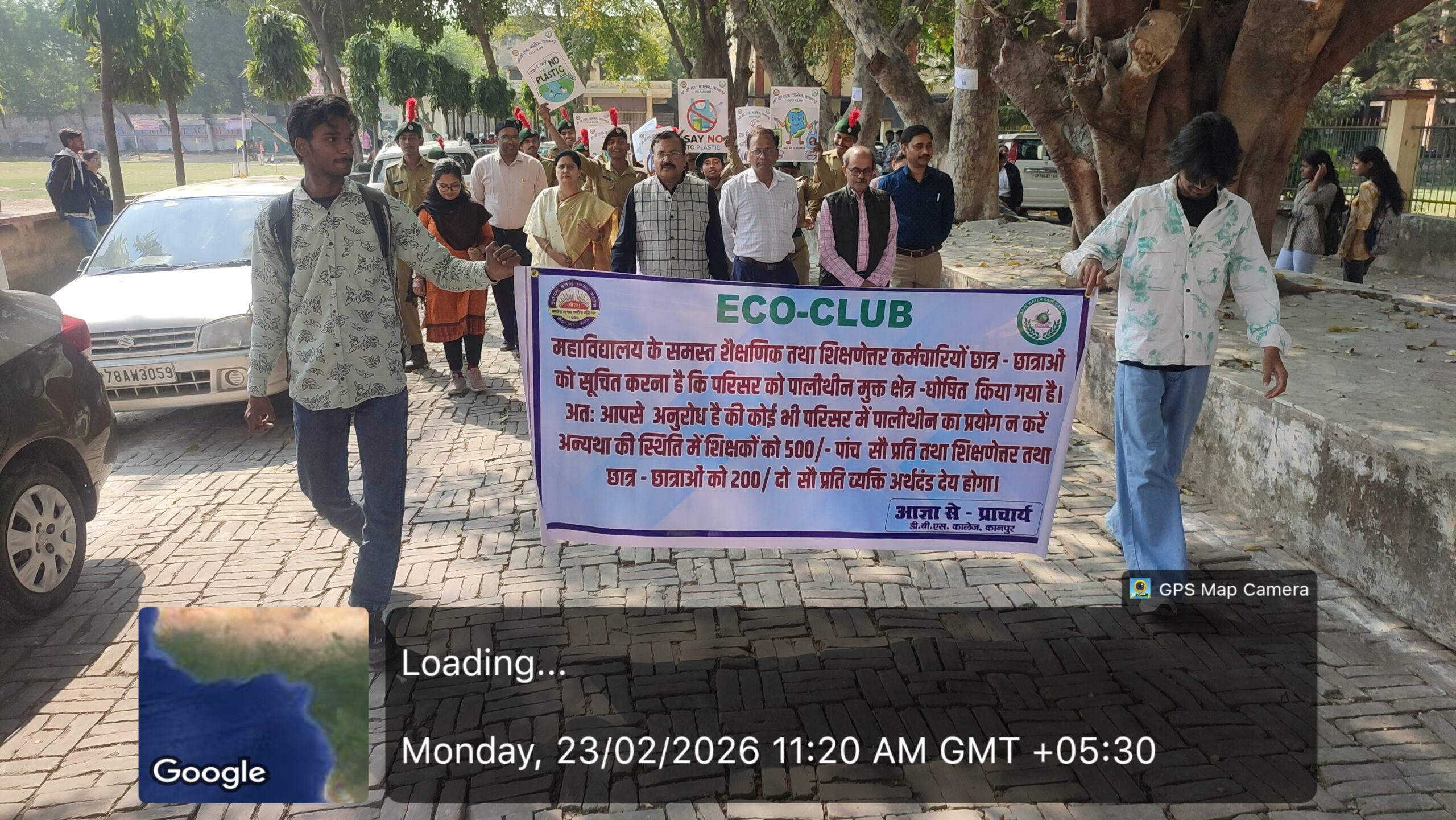 The Eco Club of DBS College, Kanpur successfully organized an awareness program on “Plastic Free Campus -Say No to Plastic” on 23rd February 2026 under the guidance of Dr. Archna Saxena, Convener of the Eco Club. The program aimed to sensitize students about the harmful effects of plastic pollution and encourage sustainable practices within the college campus.
