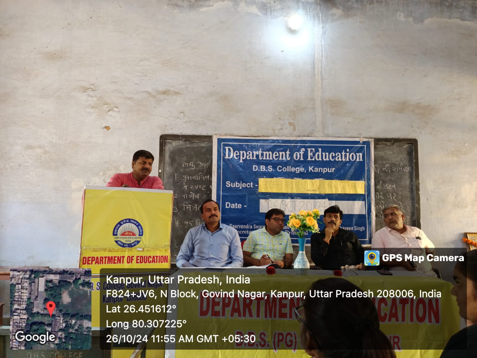 आज दिनांक 26/10/2024 दिन शनिवार को शिक्षा शास्त्र विभाग द्वारा एक व्याख्यान का आयोजन किया गया जिसका विषय ECCE (Early Childhood Care and Education)-NEP2020 रखा गया।जिसमे मुख्य अतिथि के रूप मे अरमापुर पी जी कॉलेज के शिक्षा शास्त्र विभाग के विभागाध्यक्ष डाक्टर विशाल शुक्ला को आमंत्रित किया गया। मुख्य अथिति ने अपने संबोधन में बताया कि ईसीसीई का अर्थ बच्चों को विकास के प्रारम्भिक वर्षों के दौरान स्वास्थ्य, पोषण, देखभाल और सीखने के अवसर प्रदान करना है।ईसीसीई शिक्षक को कक्षा-कक्ष संगठन तथा उसका प्रबंधन करना होता है। कार्यक्रम में मंच संचालन डॉक्टर गौरव सिंह द्वारा किया गया। कार्यक्रम के अंत में आभार ज्ञापन विभागाध्यक्ष डॉक्टर प्रवीण सिंह द्वारा दिया गया। कार्यक्रम में विभाग के अन्य सदस्य डॉक्टर कौशलेंद्र तिवारी, डॉक्टर अजय कुमार, डॉक्टर दीपक कुमार और छात्र छात्राएं उपस्थित रहे।
