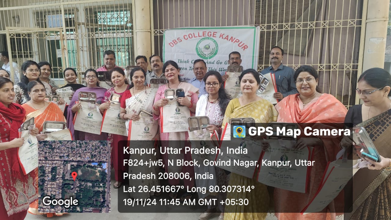On 19th November 2024, the DBS Eco Club launched the **”एक थाली एक थैला मिशन”**, an ambitious eco-friendly campaign to promote a polythene-free environment during the **Kumbh Mela**. This green initiative, aimed at fostering sustainability, was conducted under the expert supervision of Dr. Archna Saxena (Eco Club Convenor), Prof. K.K. Srivastava. Prof. C.M. Saxena, Dr. Rajesh Shukla and Prof. Vikas Mishra prof Sapna Shukla The mission sought to encourage the use of reusable bags (**thaela**) and plates (**thali**) to significantly reduce the dependency on single-use plastics and polythene. The active participation of dedicated Eco Club members, including Dr. Anita Nigam ,Dr. Jyoti Mishra,Dr. Priyanka Sonwani,Dr. Seema Tripathi,Dr. Rajneesh Kumar and Dr. Deepak Kumar,ensured the successful implementation of the initiative. With Kumbh Mela drawing millions of devotees, the team recognized the urgent need to mitigate environmental degradation caused by plastic waste. Through awareness campaigns, workshops, and on-ground activities, the club educated the public on sustainable practices and distributed reusable items. The “Ek Thali Ek Thaela” mission is a significant step toward making the **Green Kumbh** a reality. By fostering community participation and raising awareness, this initiative reflects DBS Eco Club’s commitment to a cleaner and greener future, aligning with global sustainability goals.