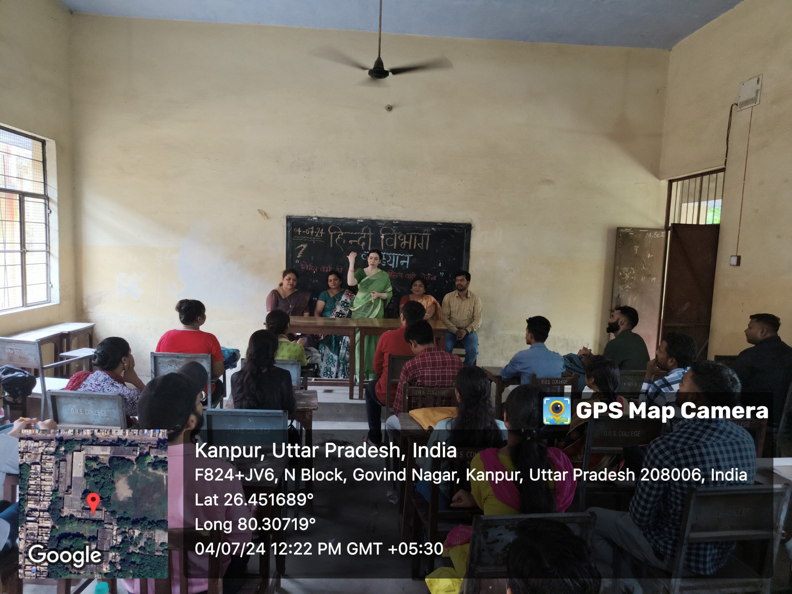डी.बी.एस. कॉलेज हिंदी विभाग द्वारा दिनांक 04/07/2024 को ‘निर्मल वर्मा की कहानियों में अस्तित्ववादी चेतना’ विषय पर एक व्याख्यान का आयोजित किया गया। व्याख्यान में मुख्य वक्ता के रूप में वी.एस.एस.डी. कॉलेज के हिंदी विभाग की एसोसिएट प्रोफ़ेसर डॉ. नीलिमा सिंह उपस्थित रहीं। डॉ. नीलिमा सिंह ने बताया कि निर्मल वर्मा की कहानियों में शहरी मध्यवर्ग के जीवन व अंतर्विरोधों का बहुत ही स्पष्ट व यथार्थ वर्णन किया गया है। साथ ही डॉ. सिंह ने बताया की पश्चिम में बीसवीं सदी के मध्य में उभरी विचारधारा अस्तित्ववाद का अपनी कहानियों में बहुत ही सुंदर संश्लेषण वर्मा जी ने किया है। व्याख्यान में मुख्य वक्ता के अतिरिक्त डी.बी.एस. कॉलेज की हिंदी विभागाध्यक्ष प्रो. नीलम बाजपेई, डॉ. अनिता सिंह, डॉ. साधना अग्रवाल, श्री शिव नारायण सिंह भी उपस्थित रहे।