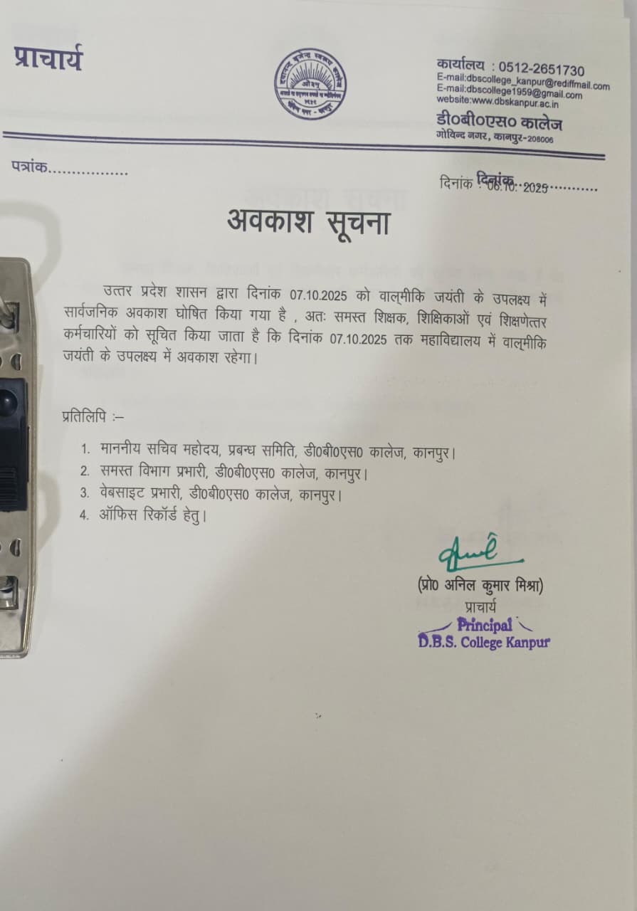 Holiday Notice (Valmiki Jayanti) 6 Oct 2025
