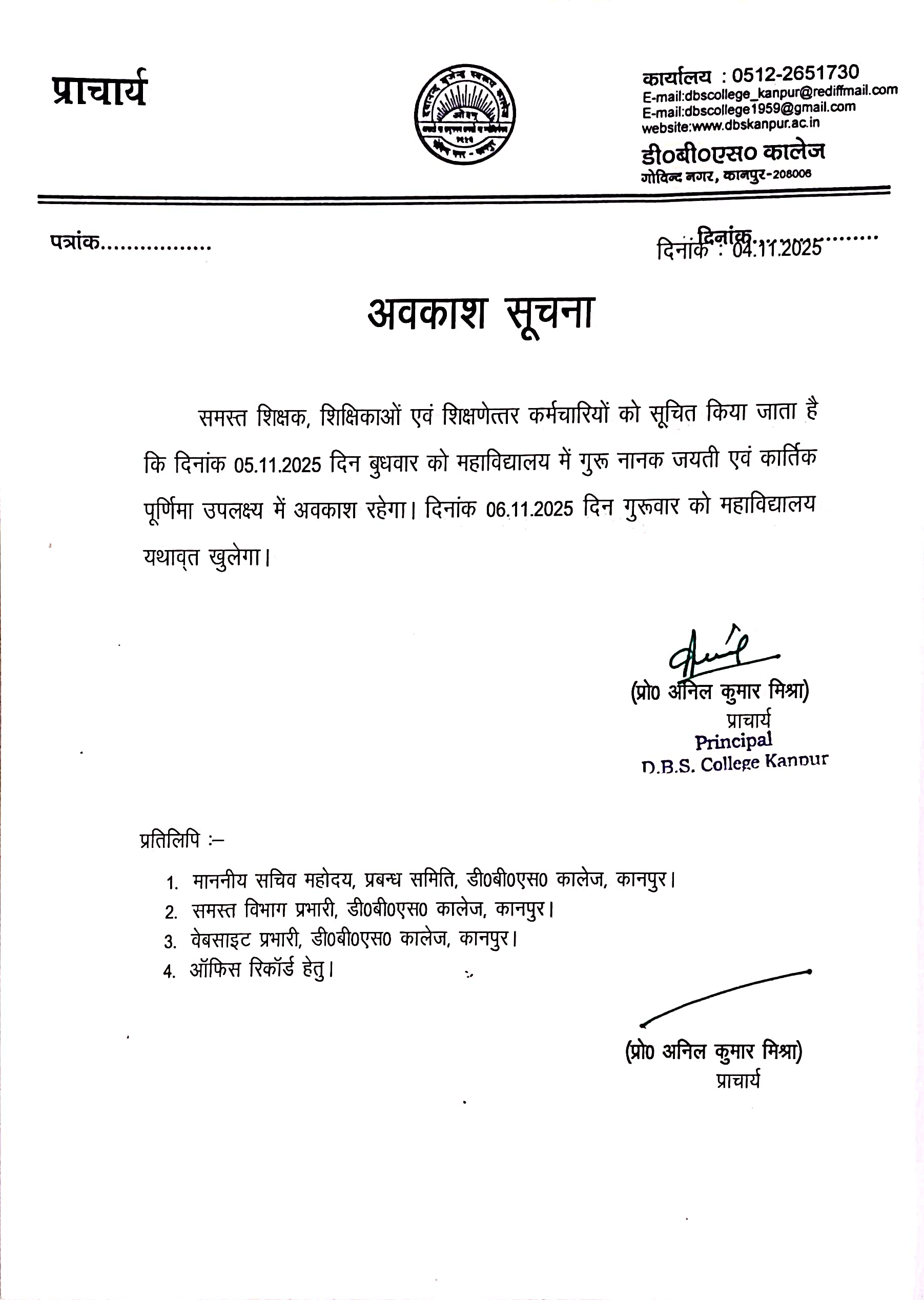 Holiday Notice 05-Nov-2025 (Guru Nanak Jayanti) New