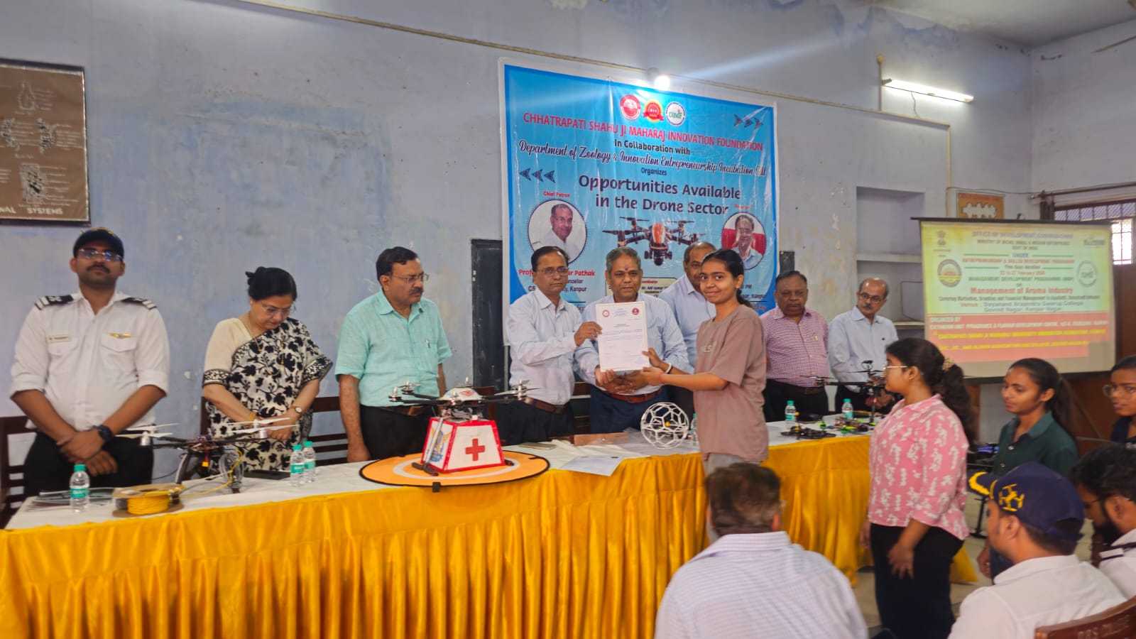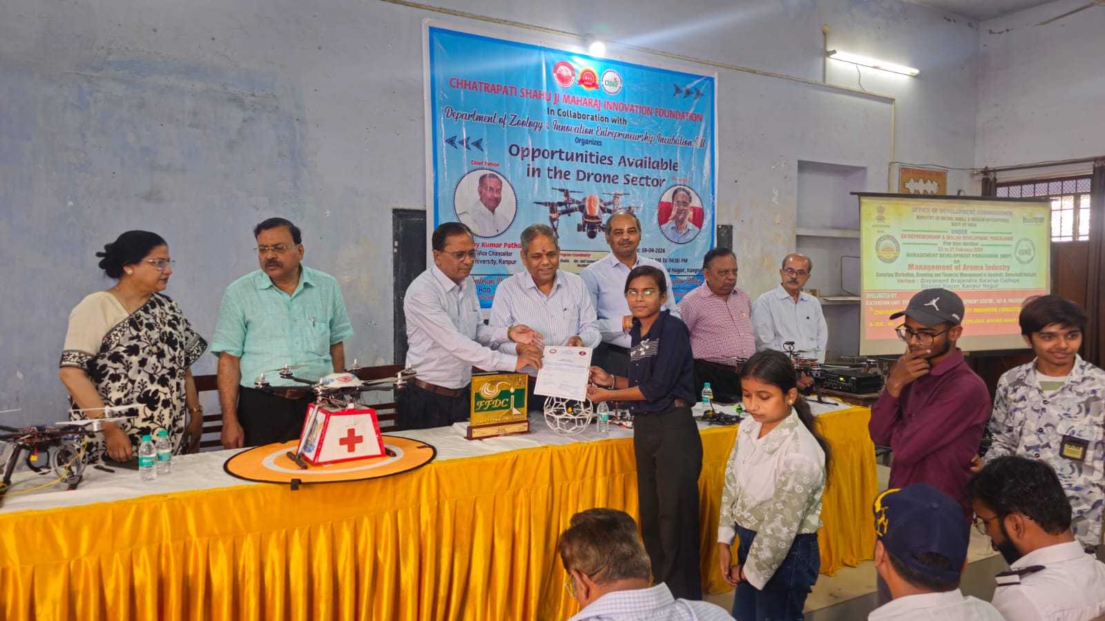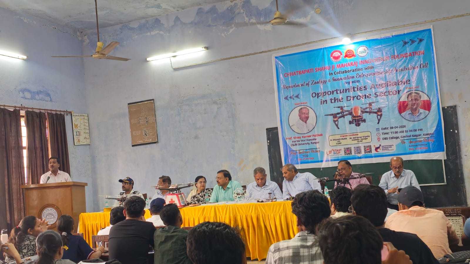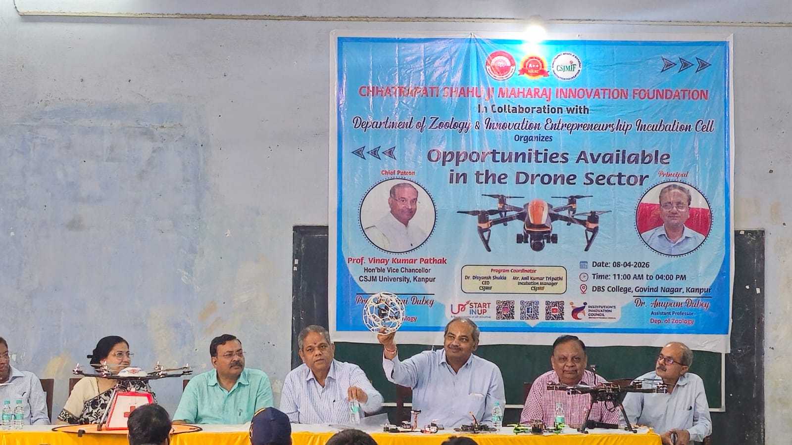 जन्तुविज्ञानविभाग, आई0ई0आई0सी0 विभाग एवं सी0एस0जे0एम0 विश्वविद्यालय कानपुर के संयुक्त तत्वाधान में ड्रोन पायलट ट्रेनिंग की वर्कशाप दिनांक 08.04.2026 को प्रातः 11 बजे से शाम 4 बजे तक एक दिवसीय वर्कशाप के रूप में कार्यक्रम संपन्न हुआ।