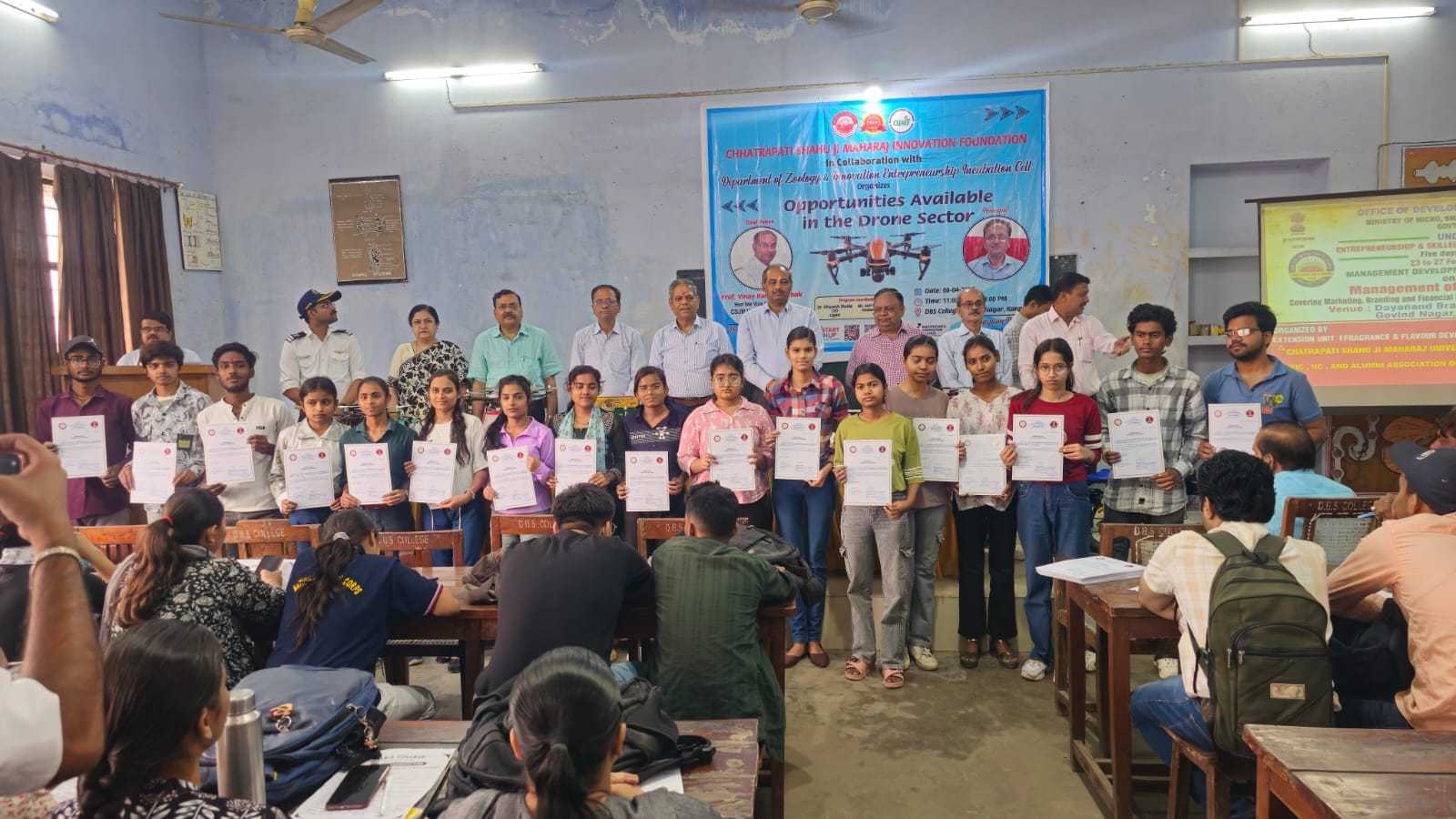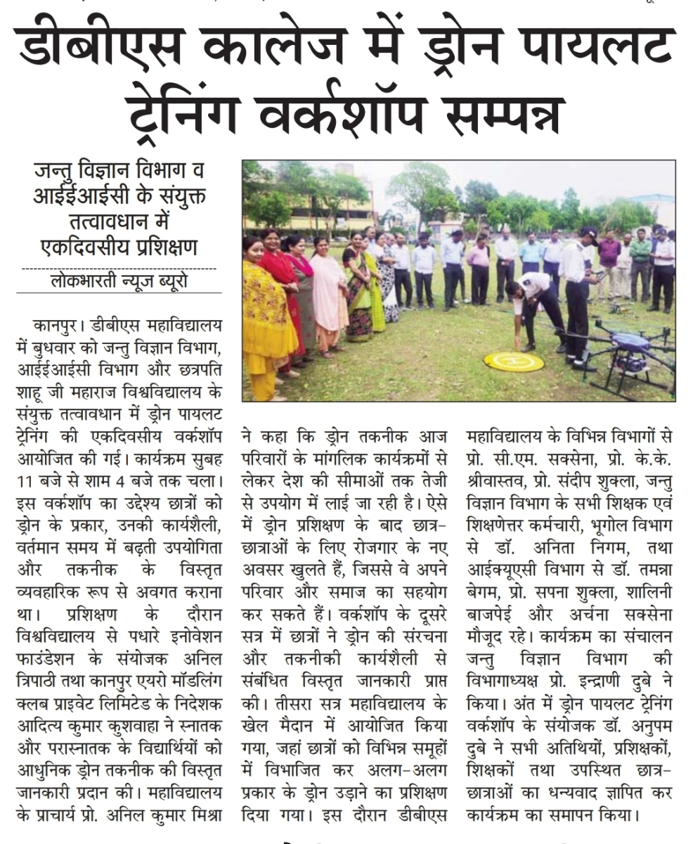 डी0बी0एस0 महाविद्यालय के प्राचार्य प्रो0 अनिलकुमारमिश्राजी ने ड्रोन प्रशिक्षण के उपरांतमहाविद्यालय के छात्र/छात्रायें कैसे विभिन्न क्षेत्रों में रोजगार प्राप्त कर सकते है| एवं अपने परिवार एवं समाज की सहायता कर सकते है,आज लगभग परिवारो के मांगलिक कार्यक्रम से लेकर देश की सीमाओं तक ड्रोन तकनीक के उपयोग का तेजी से विस्तार हो रहा है |