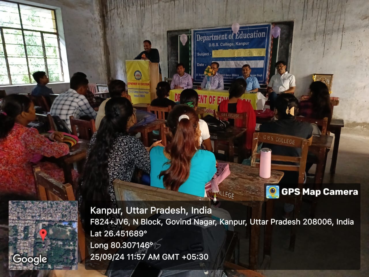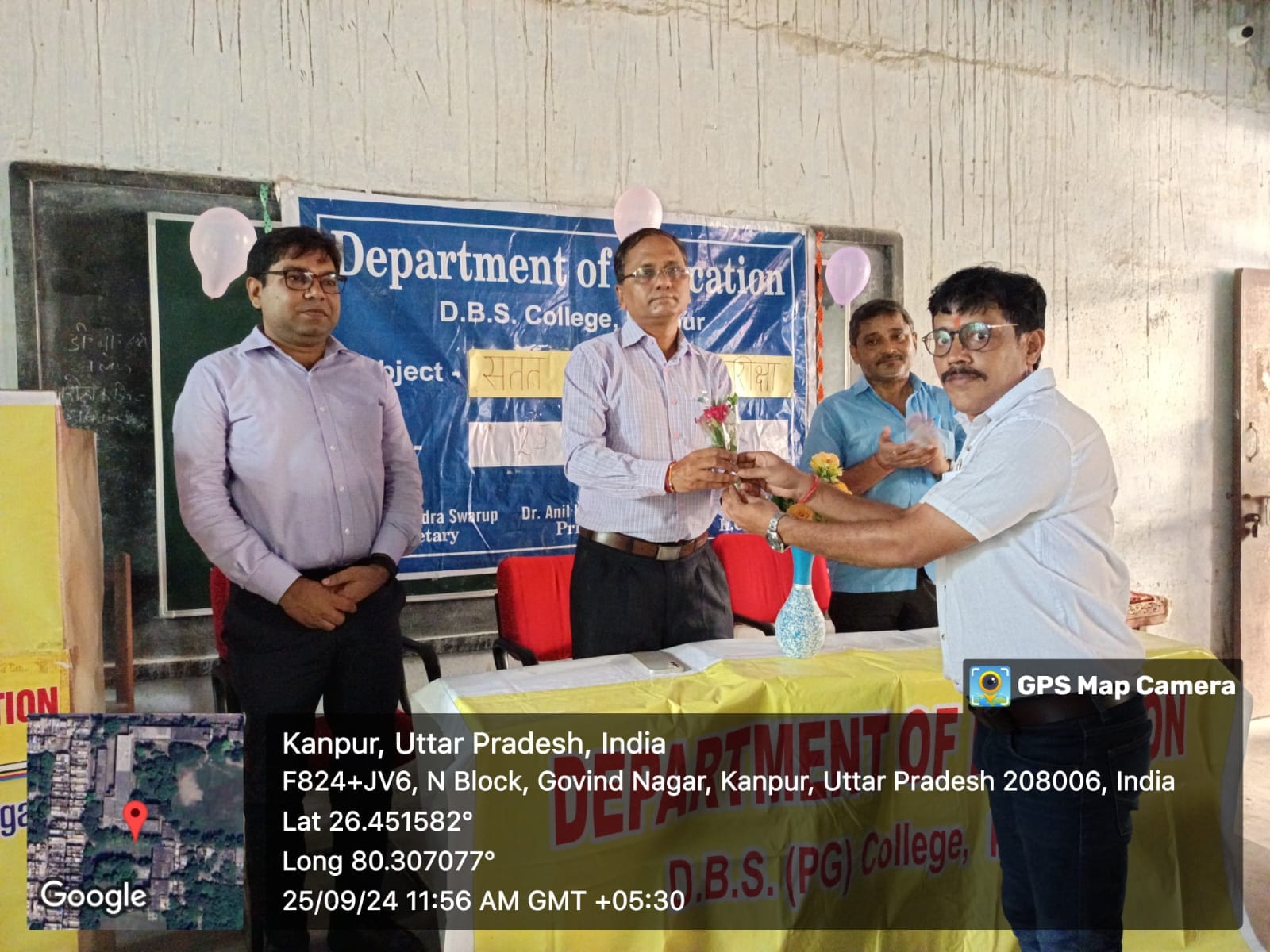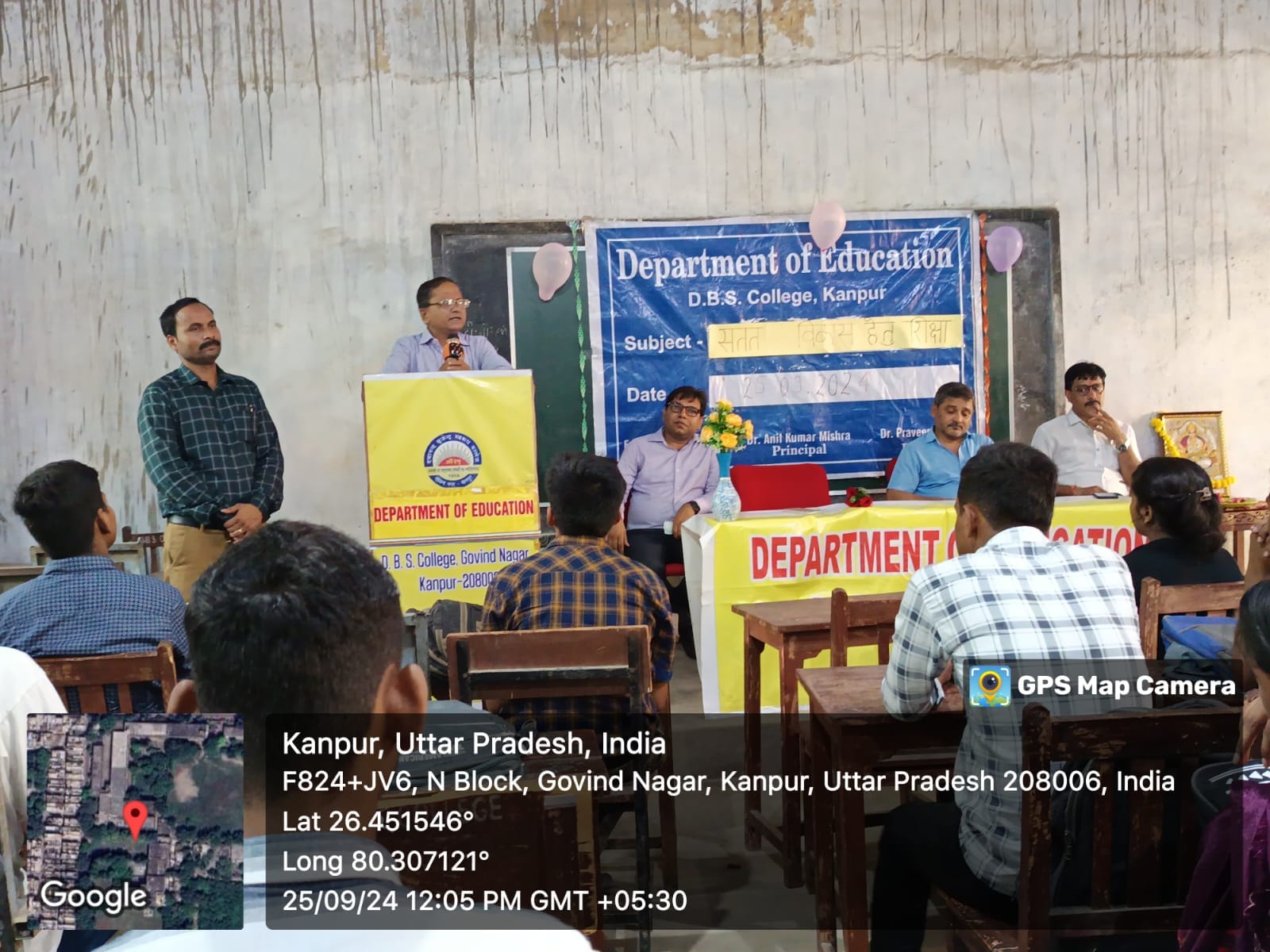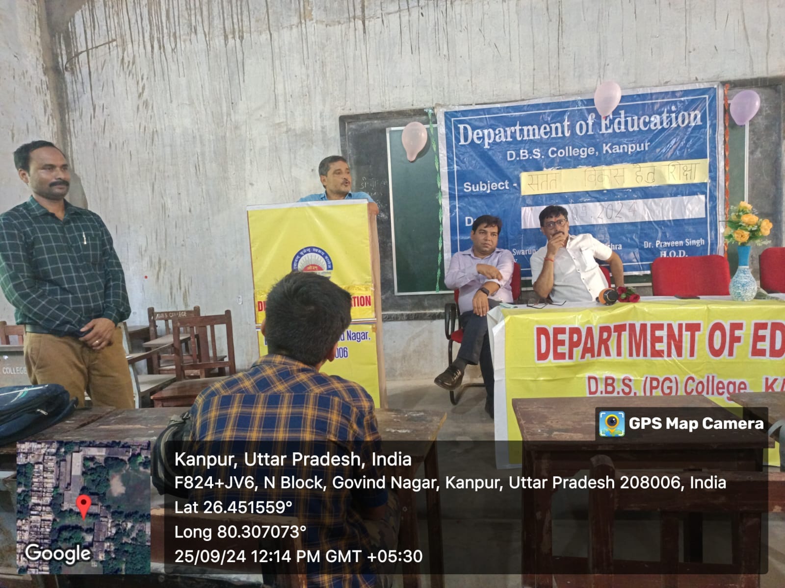 आज दिनांक 25/09/2024 दिन बुधवार को शिक्षा शास्त्र विभाग द्वारा एक व्याख्यान प्रकरण – ” सतत विकास के लिए शिक्षा ” (एन. ई. पी.2020) का आयोजन किया गया। जिसमें मुख्य अतिथि के रूप में महाविद्यालय के प्राचार्य प्रो. अनिल कुमार मिश्रा और मुख्य वक्ता के रूप में प्रो. सुनील कुमार उपाध्याय (विभागाध्यक्ष, बीएड विभाग ) उपस्थित हुए। कार्यक्रम की शुभारंभ मां सरस्वती की प्रतिमा के माल्यार्पण और वंदना के साथ हुई। सर्वप्रथम प्राचार्य जी द्वारा विषय पर छात्र और छात्राओ का मार्गदर्शन किया गया। उसके पश्चात मुख्य वक्ता द्वारा बताया गया कि विकास की इस अंधी दौड़ में हम अपने सीमित संसाधनों को खत्म करते जा रहे है उसे रोकना होगा और हमें अपने आनी वाली पीढी को भूलना नही है I अर्थात हमें अपने संसाधनों का इस प्रकार उपयोग करना है जिससे हमारी आने वाली पीढ़ी भी उसका उपयोग कर सके। कार्यक्रम के अंत में विभागाध्यक्ष प्रवीण सिंह द्वारा मुख्य अतिथि और मुख्य वक्ता को धन्यवाद ज्ञापन प्रस्तुत किया गया।कार्यक्रम में विभाग के अन्य सदस्य डा. गौरव सिंह, अजय कुमार उपस्थित रहे। मंच संचालन के रूप में दीपक कुमार ने भूमिका निभाई।