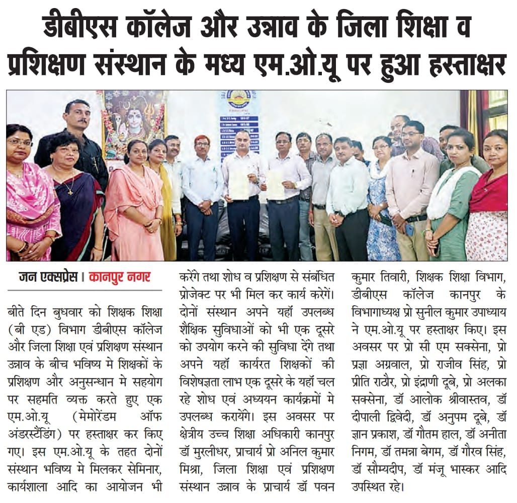 Memorandum of understanding (MOU) signed between Teacher’s Education Department,DBS College and DIET, Unnao