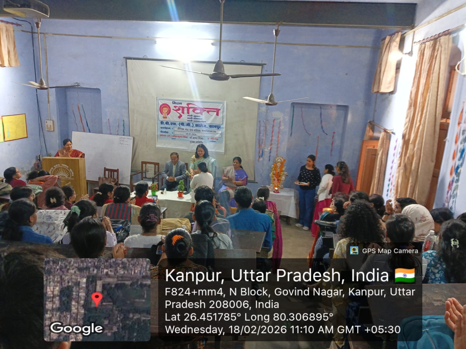दिनांक 18 फरवरी 2026 को डी.बी.एस कॉलेज में” मिशन शक्ति समिति” द्वारा “लिंगभेद एवं महिला सशक्तिकरण “पर व्याख्यान आयोजन किया गया। कार्यक्रम का उद्घाटन महाविद्यालय के यशस्वी प्राचार्य प्रोफेसर अनिल कुमार मिश्रा एवं मुख्य अतिथि डॉ. क्षमा मिश्रा ने दीप प्रज्वलन द्वारा किया। महाविद्यालय के प्राचार्य जी ने सभा को संबोधित करते हुए कहा की महिलाओं के प्रति परंपरागत अवधारणाओं को कम करने की आवश्यकता है और शिक्षा ही स्वावलंबन देती है। इस अवसर पर मुख्य अतिथि डॉ. क्षमा मिश्रा ने कहा कि आज भी लड़कियां समाज में सुरक्षित नहीं है पुरुष वर्ग को भी महिलाओं की सुरक्षा के लिए आगे आना होगा, महिलाओं को अपने आर्थिक, सामाजिक, शैक्षणिक अधिकारों को जानना जरूरी है । मिशन शक्ति समिति की संयोजिका डॉ. नीति सिंह ने धन्यवाद ज्ञापन प्रस्तुत किया। कार्यक्रम का संचालन डॉ.सीमा निगम ने किया। कार्यक्रम में मिशन शक्ति समिति के सदस्य डॉ. अर्चना सक्सेना डॉ. शालिनी बाजपेई डॉ. अनीता निगम डॉ. नीलम शुक्ला के साथ-साथ महाविद्यालय के शिक्षिकाएं डॉ. मंजू अवस्थी ,डॉ. प्रज्ञा अग्रवाल, डॉ. हेमलता सांगुली आदि उपस्थित रहे।