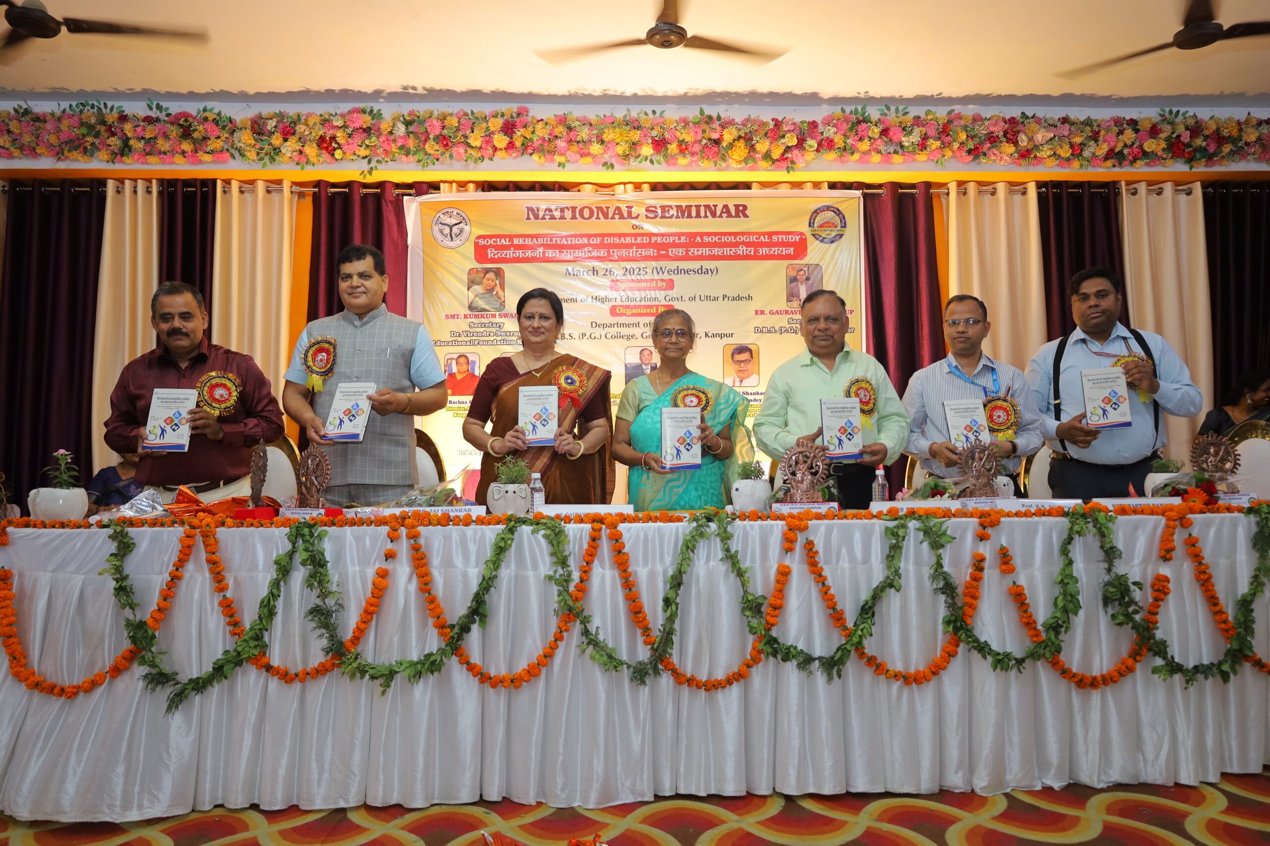 डी0 बी0 एस0 कालेज, कानपुर में आज दिनांक 27.03.2025 को दिव्गयांजनों का सामाजिक पुनर्वासन: एक समाजशास्त्रीय अध्ययन विषय पर राष्ट्रीय संगोष्ठी का समापन समारोह आयोेजित किया गया। राष्ट्रीय संगोष्ठी के सूत्रधार प्रो0 अनिल कुमार मिश्रा, प्राचार्य, डी0बी0एस0 कालेज, ने विषय प्रवर्तन करते हुए दिव्गयांजनों के सामाजिक पुनर्वासन में समाज में व्याप्त पाप- पुण्य की धारणा को एक बड़ी बाधा माना। उन्होंने कहा कि समाज दिव्गयांजनों को स्वयं उनके व माता- पिता के पाप पुण्य से जोडता है, जो दिव्गयांजनों व परिवार के लिए पीड़ादायक होता है साथ ही उनके समाज में समायोजन को भी प्रभावित करता है। महाविद्यालय के आई0क्यू0ए0सी0 प्रभारी प्रो0 के0के0 श्रीवास्तव ने समाज की पाप पुण्य संबन्धित इस सोच को दिव्गयांजनों के मानसिक स्वास्थ्य के लिए बुरा माना। कार्यक्रम के मुख्य अतिथि प्रो0 जयशंकर पाण्डेय ने कहा कि समाज अगर इसे पाप पुण्य से जोड़ना ही चाहता है तो इसमें दिव्गयांजनों की सेवा को अपने लिए पुण्य के प्रत्येक अवसर के रूप में देखे। उन्होंने दुनिया के तमाम ऐसे लोगों की चर्चा की जो दिव्गयांजनों थे लेकिन समाज को अपना महत्वपूर्ण योगदान दे सके, उन्होने कहा कि ये लोेग हमारी ही तरह सक्षम लोग हैं, अनुसंधानो ने साबित किया है कि अन्य सामान्य लोगों की तुलना में दिव्गयांजन अपने कार्य क्षेत्र में अधिक योगदान देते हैं। प्रो0 सुनील उपाध्याय ने बेहतर पुनर्वासन मे तकनीकी मशीनरी को प्राथमिकता देते हुए कहा कि हम तकनीकी कौशल के आधर पर दिव्गयांजनों के जीवन को बेहतर बनाने का सफल प्रयत्न करने की आवष्यक्ता हैं। कार्यक्रम के प्रभारी प्रो0 राजीव कुमार ने दिव्गयांजनों की विशिष्ट क्षमताओं का आवश्यकतानुसार व्यावसायिक मार्ग-निर्देशन देकर उपयोग में लाने पर बल दिया। उन्होने कहा कि दिव्गयांग कल्याण के नाम से आज अधिकांश गैर सरकारी संस्थायें एवं ट्रस्ट अपने मूल दिव्गयांजनों को छोड़कर अपनी अपनी संस्था के पुनर्वासन पर केन्द्रित हो गये हैं, सामाजिक भाव पीछे छूट गया हैं। आज आवश्यकता है कि सरकार प्रत्येक जिले की जनसंख्यात्मक आधार पर दिव्गयांग परामर्श एवं प्रशिक्षण केन्द्र की स्थापन करें, दिव्गयांगता के विविध क्षेत्रो में कौशल से निपुण प्रशिक्षार्थियों की नियुुक्ति सरकार के द्वारा की जाए, इससे इस क्षेत्र मे विविध रोजगार का सृजन होगा। दिव्यांग बच्चों के माता-पिता को इन केन्द्रो से सम्बद्ध कर मानसिक सम्बल देने की प्रक्रिया को बल मिलेगा। कार्यक्रम का संचालन डा0 हेमलता सांगुडी एवं डा0 प्रतिभा सिंह द्वारा किया गया। इस कार्यक्रम में मुख्य रूप से श्री जगदीप दिवाकर, डा0 सी0एम0सक्सेना, डा0 शैलेन्द्र शुक्ला, डा0 प्रीती राठौर, डा0 ज्ञानप्रकाश डा0 महे