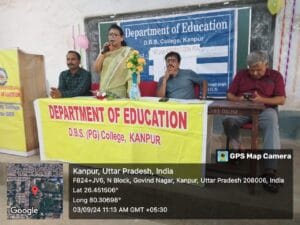 आज दिनांक 03/09/2024 को शिक्षा शास्त्र विभाग द्वारा NEP(2020)-An Orientation programme का आयोजन कमरा न 204 में किया गया। जिसमें मुख्य अतिथि के रूप में ज्वाला देवी महिला पी जी कॉलेज की डॉक्टर ममता शुक्ला (असि. प्रो.) ने अपना बहुमूल्य समय देकर बीए प्रथम सेमेस्टर के छात्र छात्राओं को NEP(2020) के बारे में विस्तार से बताया।कार्यक्रम में विभाग के श्री दीपक कुमार (असिस्टेंट प्रो) द्वारा मंच संचालन किया गया | इसके साथ साथ विभाग के अन्य सदस्य डॉक्टर कौशलेंद्र तिवारी (असिस्टेंट प्रो), डॉक्टर गौरव सिंह, श्री अजय कुमार उपस्थित रहे।कार्यक्रम के अंत में विभागाध्यक्ष श्री प्रवीन सिंह द्वारा मुख्य अतिथि को धन्यवाद ज्ञापन देकर कार्यक्रम का समापन किया गया|
