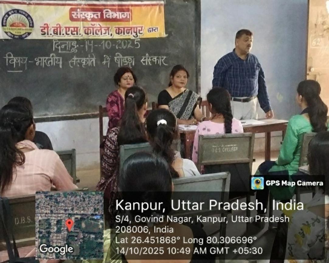दिनांक 14:10 2025 को संस्कृत विभाग द्वारा “भारतीय संस्कृति में षोडश संस्कार विषय पर परिचर्चा” कार्यक्रम का आयोजन किया गया। कार्यक्रम का आरम्भ एम० ए ० प्रथम सेमेस्टर की छात्रा दीपा विश्वकर्मा द्वारा सरस्वती वन्दना के साथ प्रारम्भ हुआ। उक्त कार्यक्रम में विभाग प्रभारी प्रो० प्रीति राठौर ने कहा कि संस्कारों का उद्देश्य व्यक्ति के शारीरिक, मानसिक और आध्यात्मिक विकास को पूर्णता प्रदान करना है। भारतीय संस्कृति में 16 संस्कारों की एक पारंपरिक सूची है जो जन्म से लेकर मृत्यु तक जीवन के महत्वपूर्ण पड़ावों को चिन्हित करती है. इस तथ्य को उद्घाटित करते हुये इतिहास विभाग के विभागाध्यक्ष डॉ० सुमिलानन्दन श्रीवास्तव जी ने अपने वक्तव्य में कहा । कार्यक्रम का संचालन विभाग की एसो० प्रो० डॉ० प्रत्यूष वत्सला द्विवेदी ने किया। उन्होंने कहा- ये संस्कार इस जीवन में ही मनुष्य को पवित्र नहीं करते है अपितु पारलौकिक जीवन को भी पवित्र बनाते हैं। कार्यक्रम में संस्कृत विषय के छात्र छात्रायें जिनमें महालक्ष्मी शुक्ला , हर्षित अवस्थी, दीपा विश्वकर्मा, आरती गुप्ता, आर्यवीर सिंह, रोशनी पाल, नेहा मौर्या आदि ने भी अपने विचार प्रस्तुत किये।