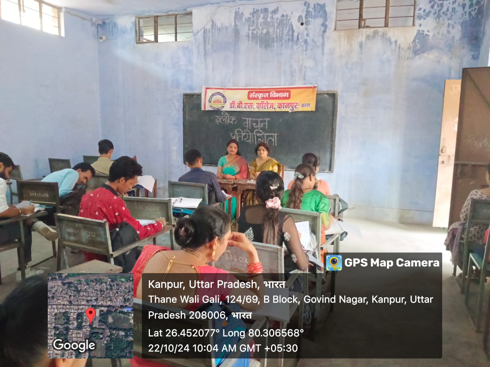 डीबीएस कॉलेज कानपुर संस्कृत विभाग के संस्कृत छात्र परिषद द्वारा दिनांक 22 अक्टूबर 2024 श्लोक वाचन प्रतियोगिता का आयोजन किया गया । कार्यक्रम को आगे बढ़ाते हुए विभागाध्यक्षा जी ने प्रोफेसर प्रीति राठौर ने बताया कि श्लोक वाचन प्रतियोगिता का उद्देश्य शुद्ध उच्चारण का सीखना है क्योंकि अशुद्ध उच्चारण से अर्थ का अनर्थ हो सकता है इसलिए लोगों का शुद्ध उच्चारण अत्यावश्यक है प्राध्यापिका डॉ प्रत्यूष वत्सला द्विवेदी संस्कृत श्लोक का हमारे जीवन में क्या महत्व है यह बताते हुए विभिन्न पहलुओं की ओर ध्यान आकृष्ट किया ।जिसमें सभी छात्र-छात्राओं के श्लोक वाचन प्रतियोगिता में सहभागिता की। जिसमें प्रथम रोशनी पाल द्वितीय महालक्ष्मी शुक्ला तथा तृतीय निहारिका श्रीवास्तव रहीं ।