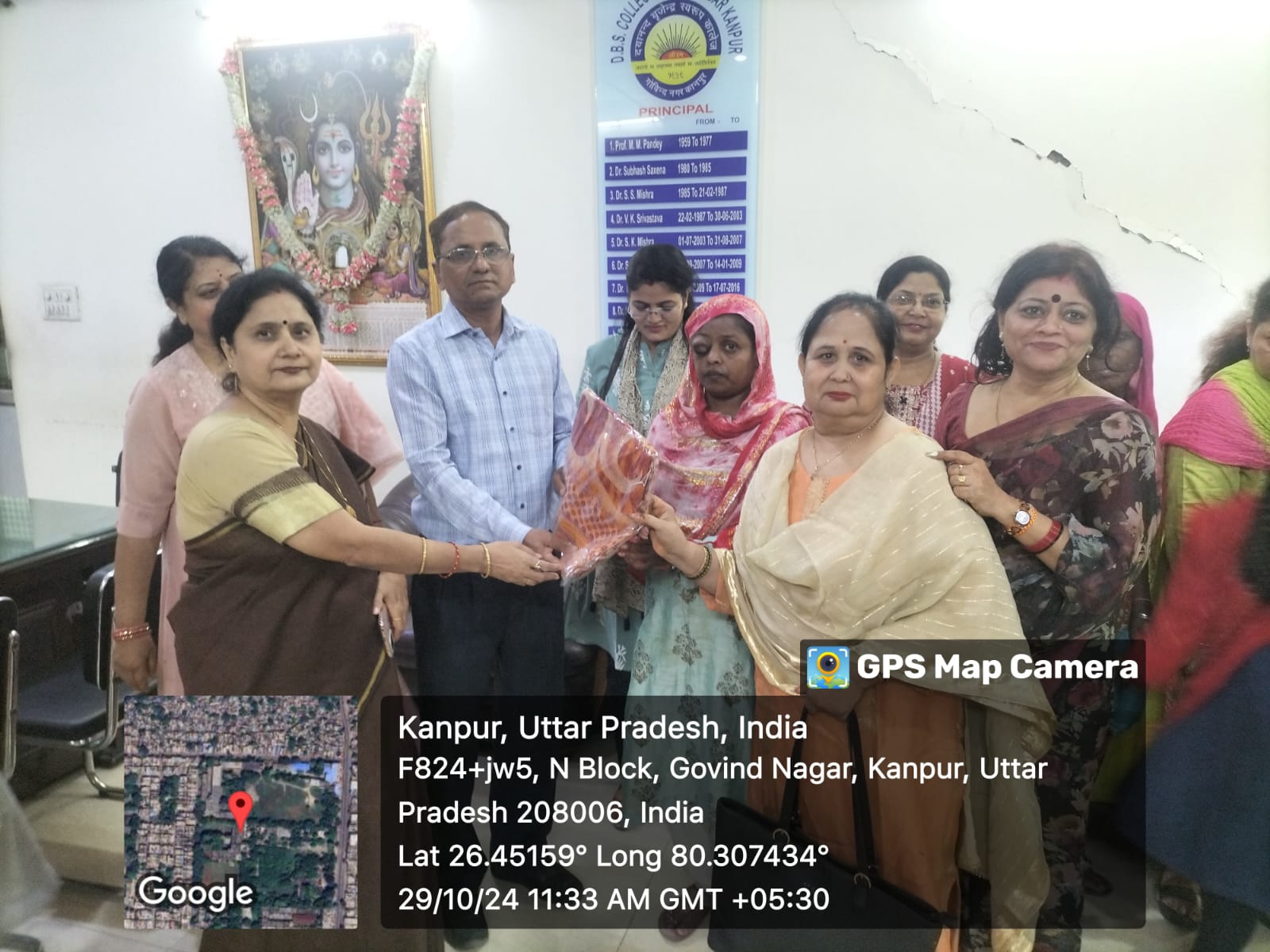 डी० बी० एस० कालेज, कानपुर की शिक्षिकाओं द्वारा 75 साड़ियां को एकत्र करने का पुनीत कार्य किया गया| इस कार्यक्रम में आज दिनांक 29.10.24 को महाविद्यालय में जरूरतमंद महिलाओं को साडियों का वितरण किया गया।
