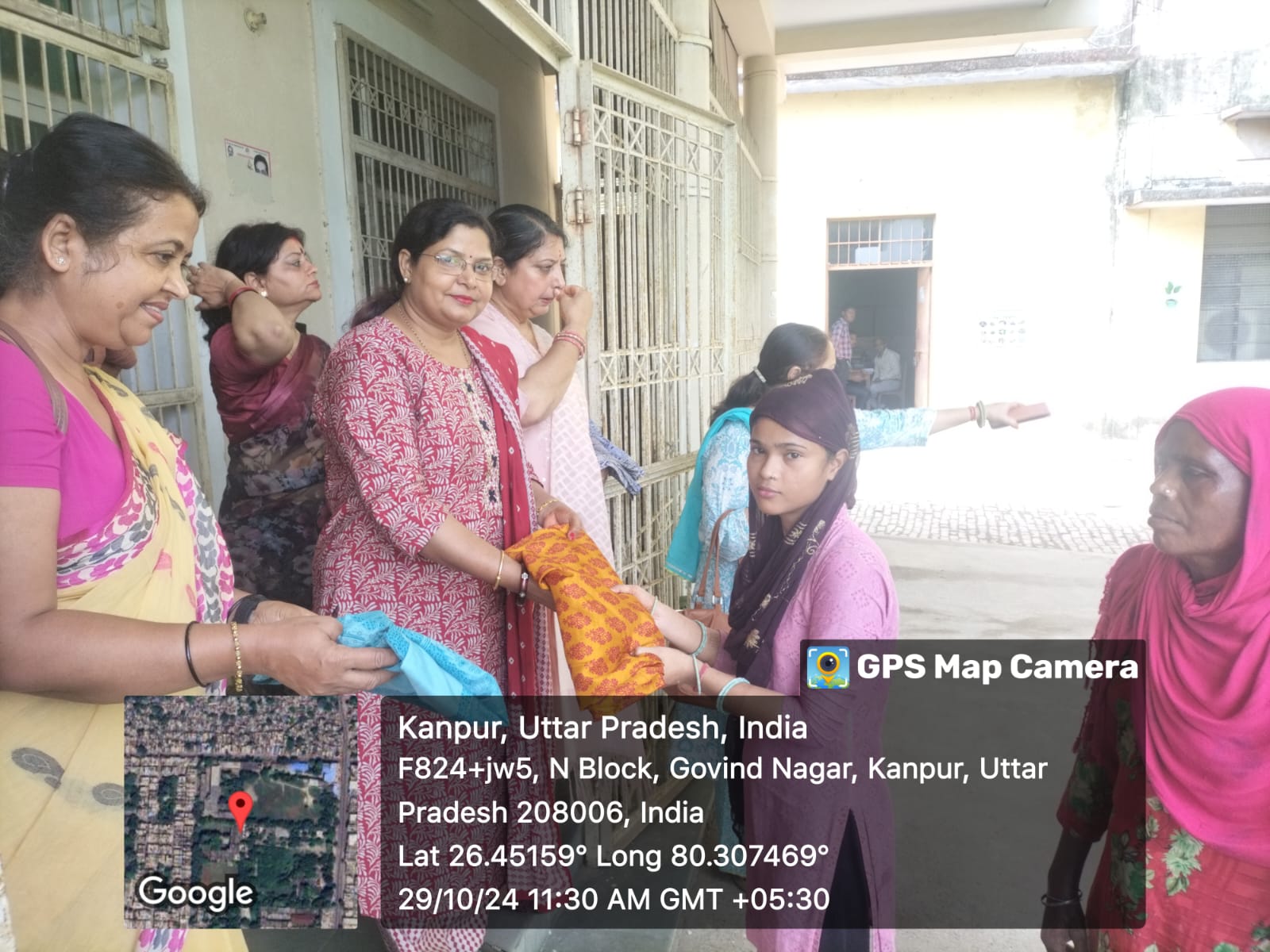 डी० बी० एस० कालेज, कानपुर की शिक्षिकाओं द्वारा साडियों का वितरण