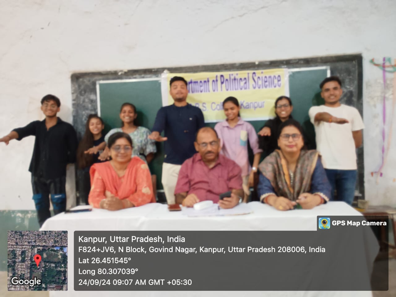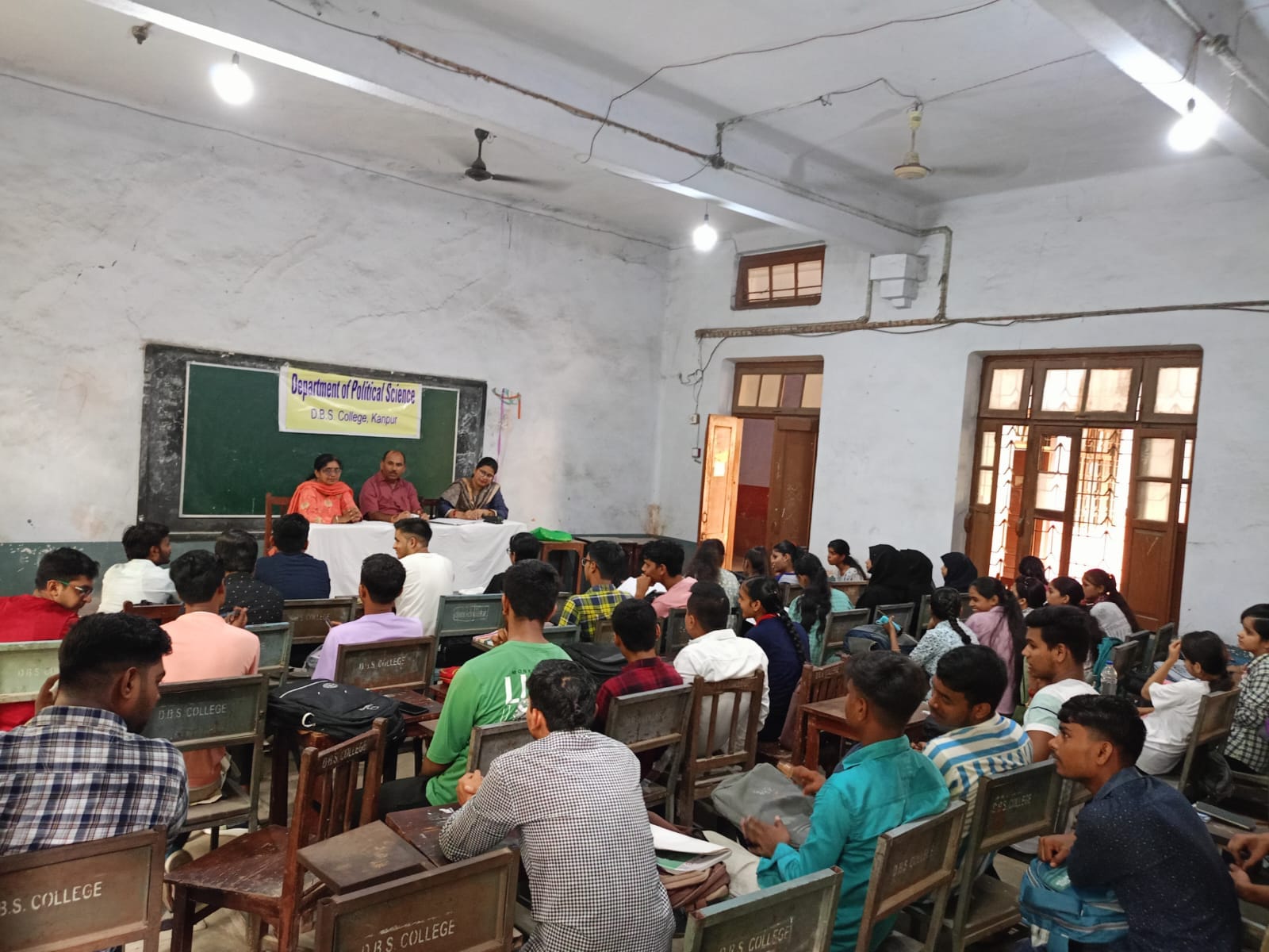 दिनाक २४ सितंबर 2024 को राजनीति विज्ञान विभाग, डी०बी०एस० कॉलेज कानपुर में छात्र परिषद के गठन का आयोजन किया गया। इस कार्यक्रम मे छात्रों ने बढ़-चढ़कर हिस्सा लिया। गठन के दौरान विभिन्न पदों के लिए छात्रों ने अपनी उम्मीदवारी पेश की। प्रमुख पदों में अध्यक्ष, उपाध्यक्ष, सचिव , उपसचिव और कोषाध्यक्ष का चयन हुआ। गठन प्रक्रिया शांतिपूर्ण और सुचारू रूप से संपन्न हुई। अध्यक्ष पद के लिए अभिषेक यादव, उपाध्यक्ष पद के लिए अभिषेक पांडे, सचिव पद के लिए मोहसीना व उप सचिव के लिए चिराग मिश्रा का चयन किया गया इसके अलावा मीडिया विभाग हर्ष सिंह और वंश को सौपा गया तथा साज सज्जा विभाग अंशु और आकांक्षा को, कोषाध्यक्ष पद के लिए रोशनी का चयन किया गया। विभागाध्यक्ष ने नवनिर्वाचित छात्रों को बधाई दी और शापथ भी दिलाई। विभागाध्यक्ष ने छात्रों से विभाग और महाविद्यालय के विकास में योगदान देने की अपील की। विभागाध्यक्ष ने नवनिर्वाचित प्रतिनिधियों को उनके उत्त उत्तरदायित्व की जानकारी देते हुए कहा की यह प्रतिनिधि छात्र व विभाग के मध्य एक कड़ी है जो विभाग और छात्रों को आपस में जोड़ने के लिए एक समन्वय की भूमिका निभाएंग। कार्यक्रम में डॉक्टर शिखा सक्सेना व डॉक्टर प्रीति सिंह उपस्थित रही और लगभग 50 छात्र छात्राओं ने इसमें हिस्सा लिया।